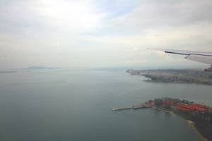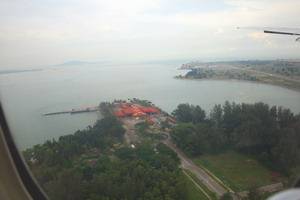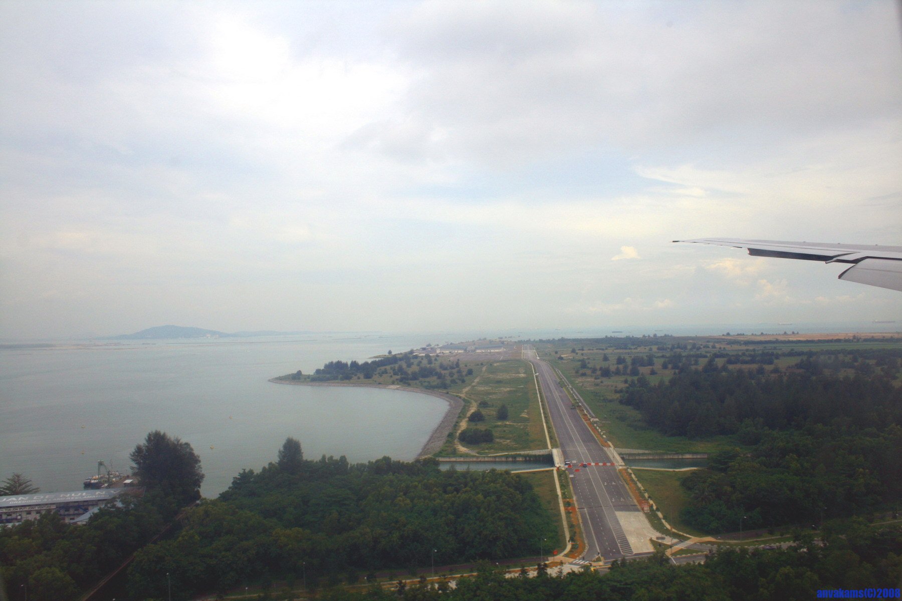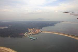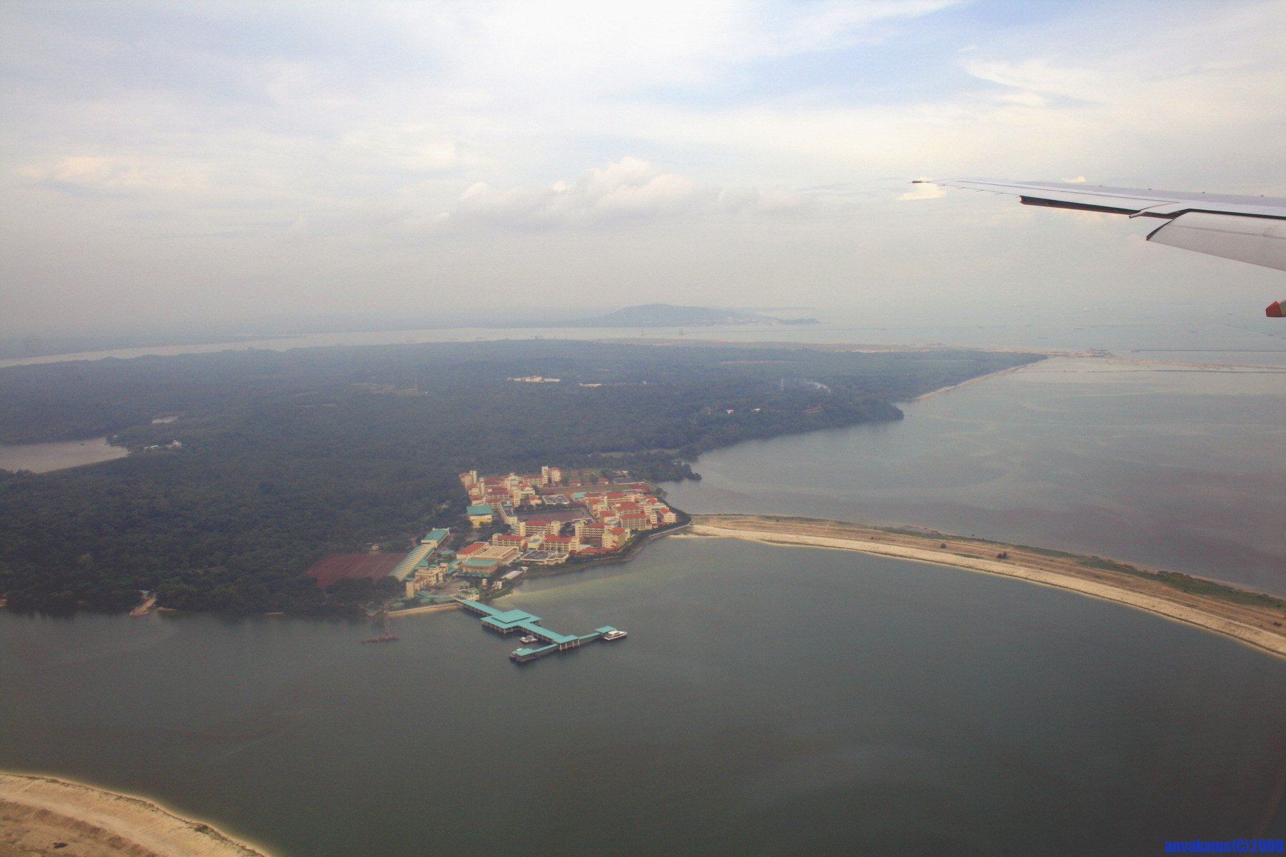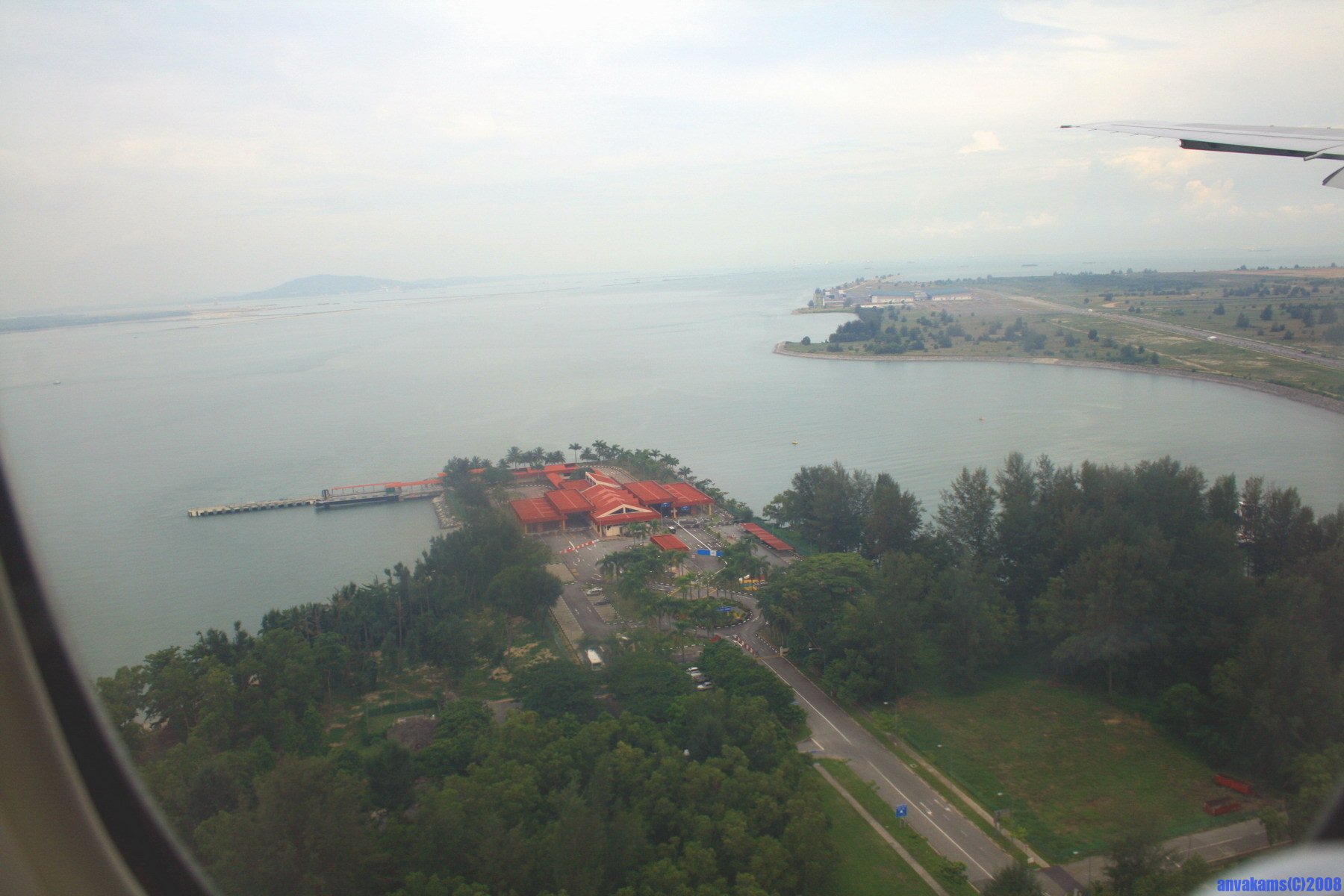 И вот мы перелетаем уже пролив между Малайзией и Сингапуром. Видна пристань на берегу Сингапура, откуда отправляются теплоходы до разных точек Малайзии, а также к сингапурскому острову Юбин.