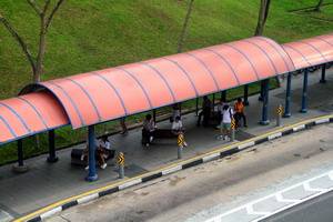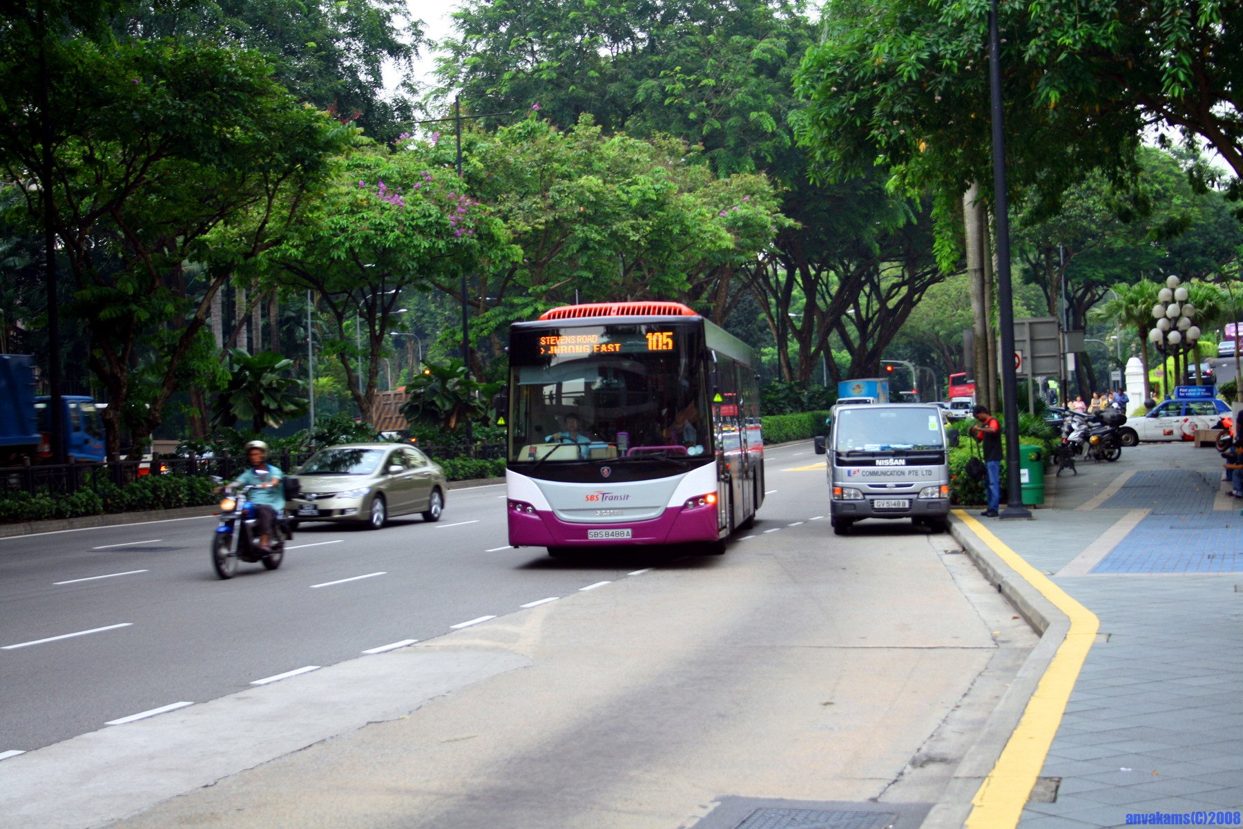 | А вот и мой автобус 105. Поясню, где на него садиться: после метро переходите Орчард Роуд, идете по перпендикулярной к ней улице метров 100, и около отеля Hayatt будет остановка. |
