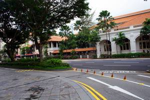 | Иду обратно на стоянку такси мимо помпезного отеля Раффлз… |