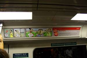 | В автобусе тоже висят прикольные комиксы, на сей раз посвященные тому, что надо уступать место старшим, ну и тому, кому это реально надо. Сделано отлично! :) |