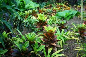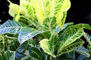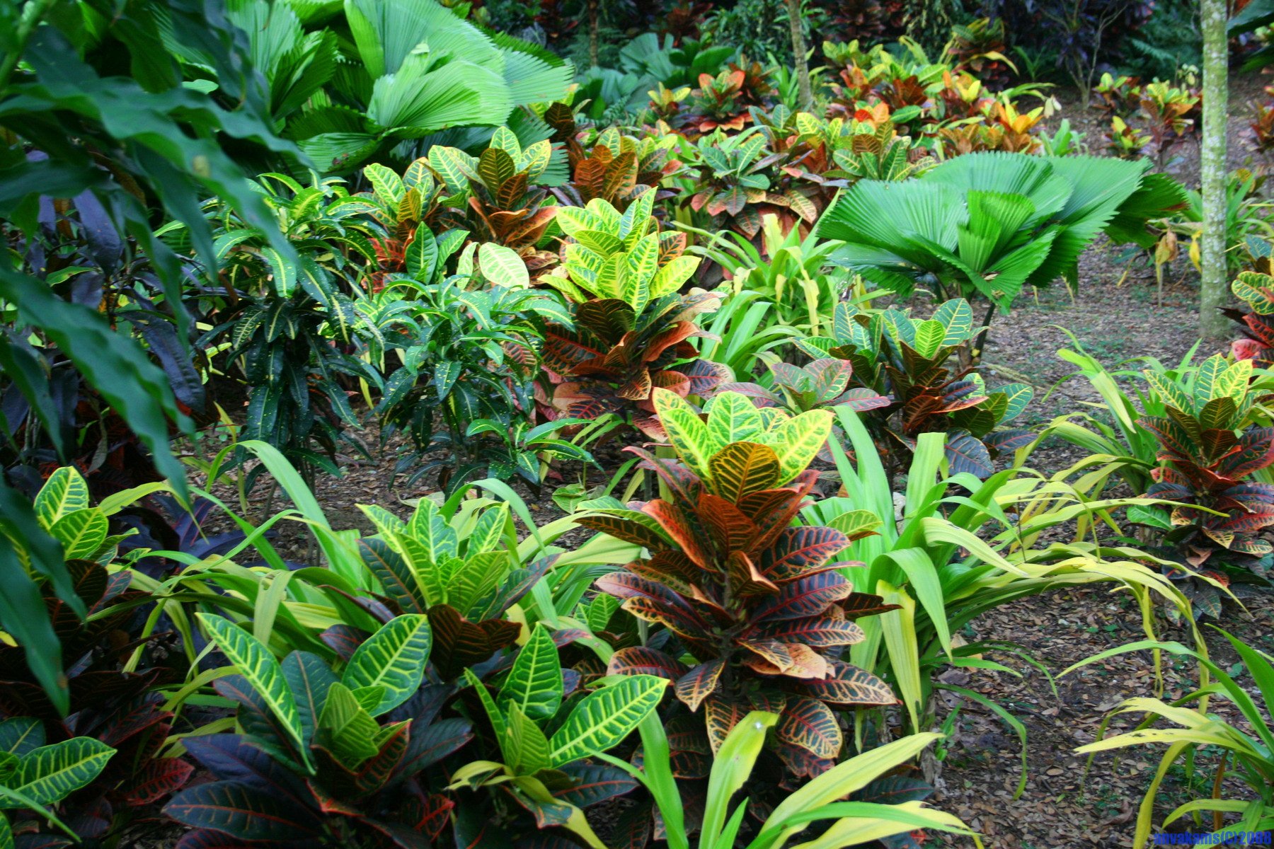 …Кротоны росли ровными кустами с лопухами разноцветных листьев (такой куст можно купить в Москве как комнатное растение, однако свою яркость он быстро потеряет в условиях северного малого света, а тут, на солнце, он играет всеми цветами радуги, кроме синего!_.