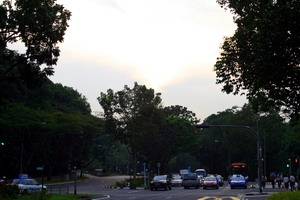 Я почему еще сюда приехал? Потому что уже время шло к закату. А этот момент к этом парке очень чарующий. Очень помогает для вдохновения. Если кто помнит прошлый мой отчет, я был тут примерно в этот же час. Когда дневные цикады замолкают, а эстафету перенимают ночные сверчки и им подобные. Когда птицы черными крестами летяют на фоне изумительной красоты неба оттенков от голубого и розового до синего и бархатно-лилового, ища себе место для ночлега.