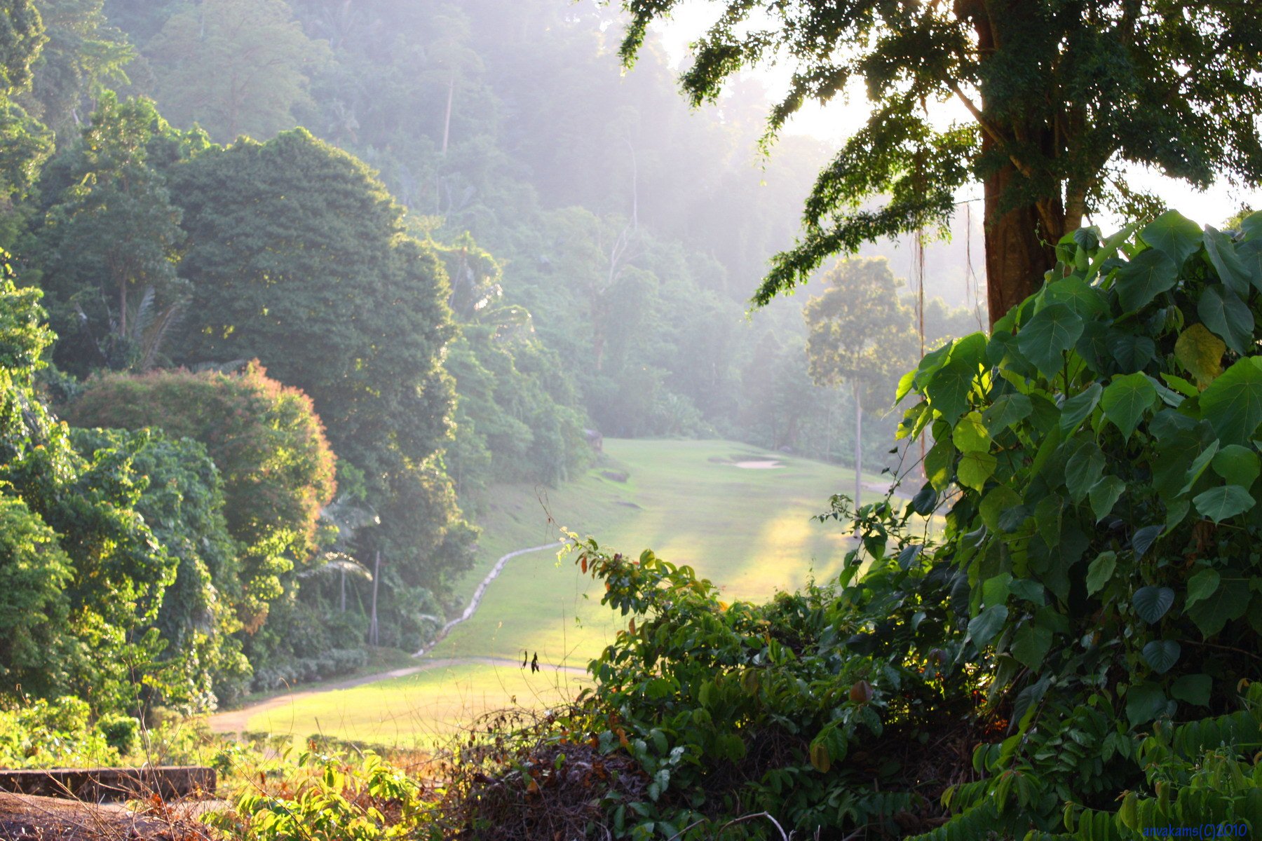 Хорошо уже известный нам коралловый остров (Тулай) виден как на ладони с высоты гольфовых полей (территория после жилой зоны мало-помалу поднимается вверх, доходя уже до более крутых склонов, где уже начинается дикий лес).