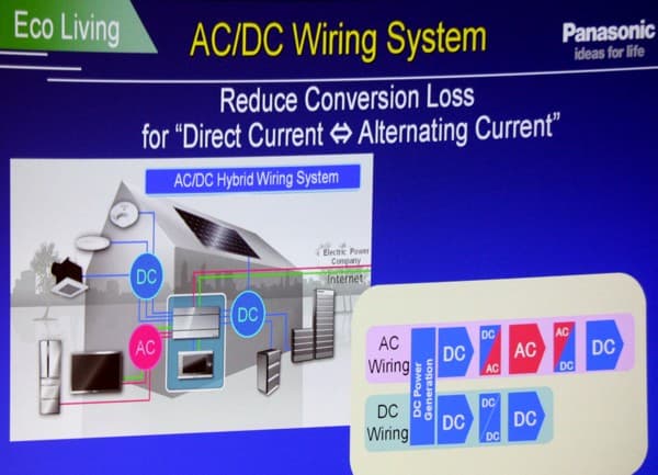 Топливной ячейкой вырабатывается постоянный ток, при преобразовании которого в переменный неизбежны значительные потери (переменный в постоянный преобразуется с большей эффективностью). Что бы их избежать, в Panasonic разработана концепция гибридного электроснабжения, согласно которой часть потребителей питается от переменного тока, часть — от постоянного.