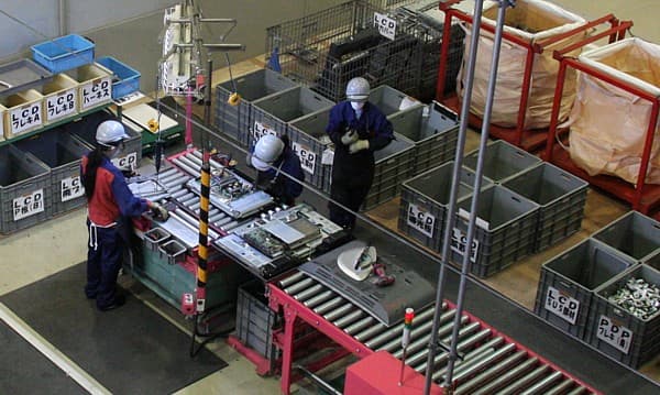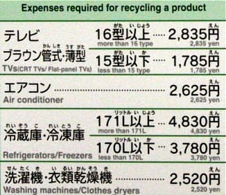 Одним из самых эффективных способов сократить потребление ресурсов и уменьшить количество отходов является вторичная переработка. На этот счет в Японии существует достаточно жесткое законодательство, в частности нормирующее минимальный процент переработки для различных видов бытовой техники. Заметим, что при этом конечный пользователь платит за утилизацию, например, 2838 йен за большой телевизор и 4830 йен за большой холодильник.