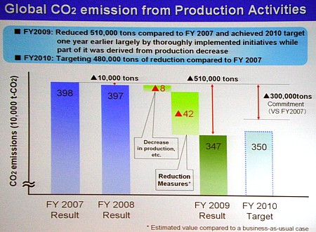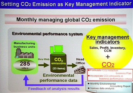 Этот раздел экологической программы касается в основном внутренних дел самой компании. Кроме уменьшения выбросов CO2 на всех своих предприятиях, компания прилагает активные усилия по увеличению сбережения ресурсов и уменьшению количества отходов. В качестве четко поставленной цели компания Panasonic запланировала за три года уменьшить выброс CO2 на 300 тыс. т относительно уровня 2007 года.