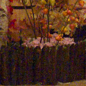 Видно, что при ISO 1600 шумы становятся очень заметными, но еще хорошо подавляются при сохранении в JPG самой камерой, и только при ISO 3200 функция шумоподавления уже слишком сильно сглаживает изображение, в результате чего детали пропадают.