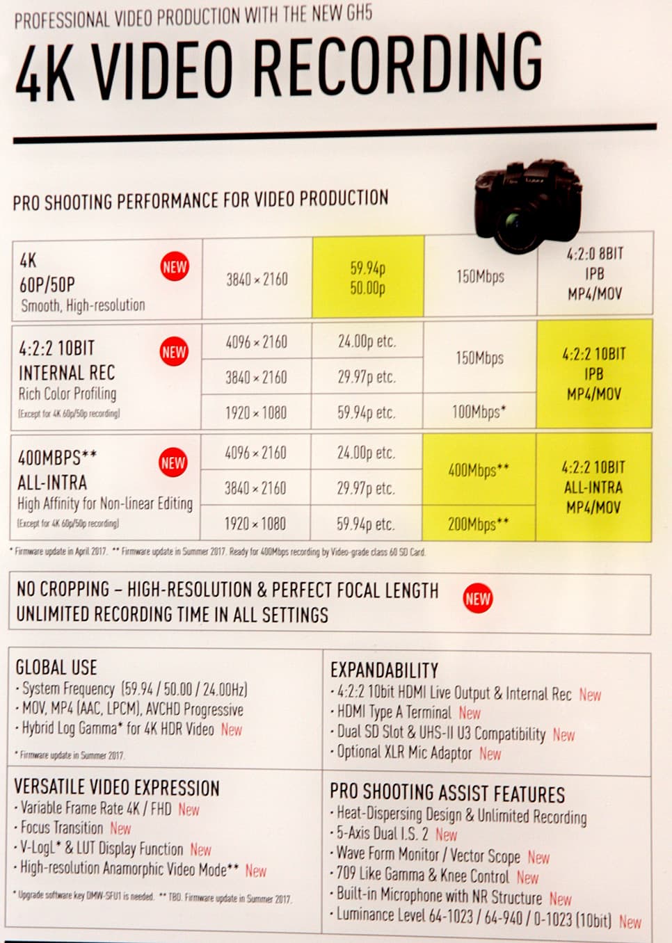 Таблица ниже дает представление о том, какое видео может снимать камера GH5 уже сейчас и сможет после обновления прошивки.