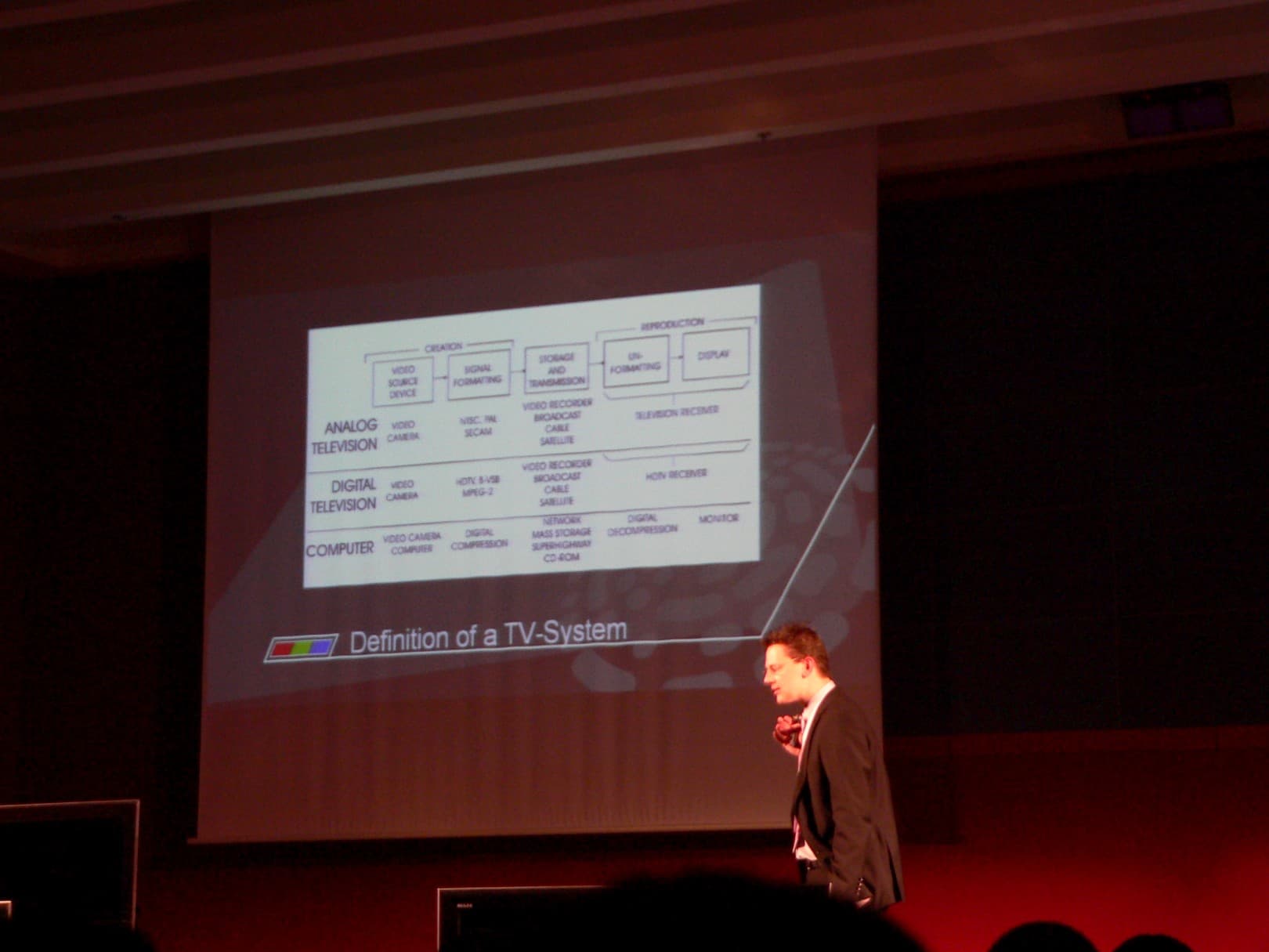 Сама презентация была очень общая и производила скорее впечатление маркетинг-тренинга, чем описания новых моделей. Однако таковы практически все европейские презентации. Такое впечатление, что европейских посетителей держат за полных… несмышленышей, т.к. суть многих выступлений у почти всех европейцев сводится к «вот, детки, как это клево, как это здорово, какой это хороший продукт, какой он здоровский, он показывает… фильмы!». Оказалось, что речь шла о телевизоре. Причем на Западе есть и очень хорошие технически грамотные ресурсы, и отличные технические форумы… Но, тем не менее, мы имеем то, что имеем.
