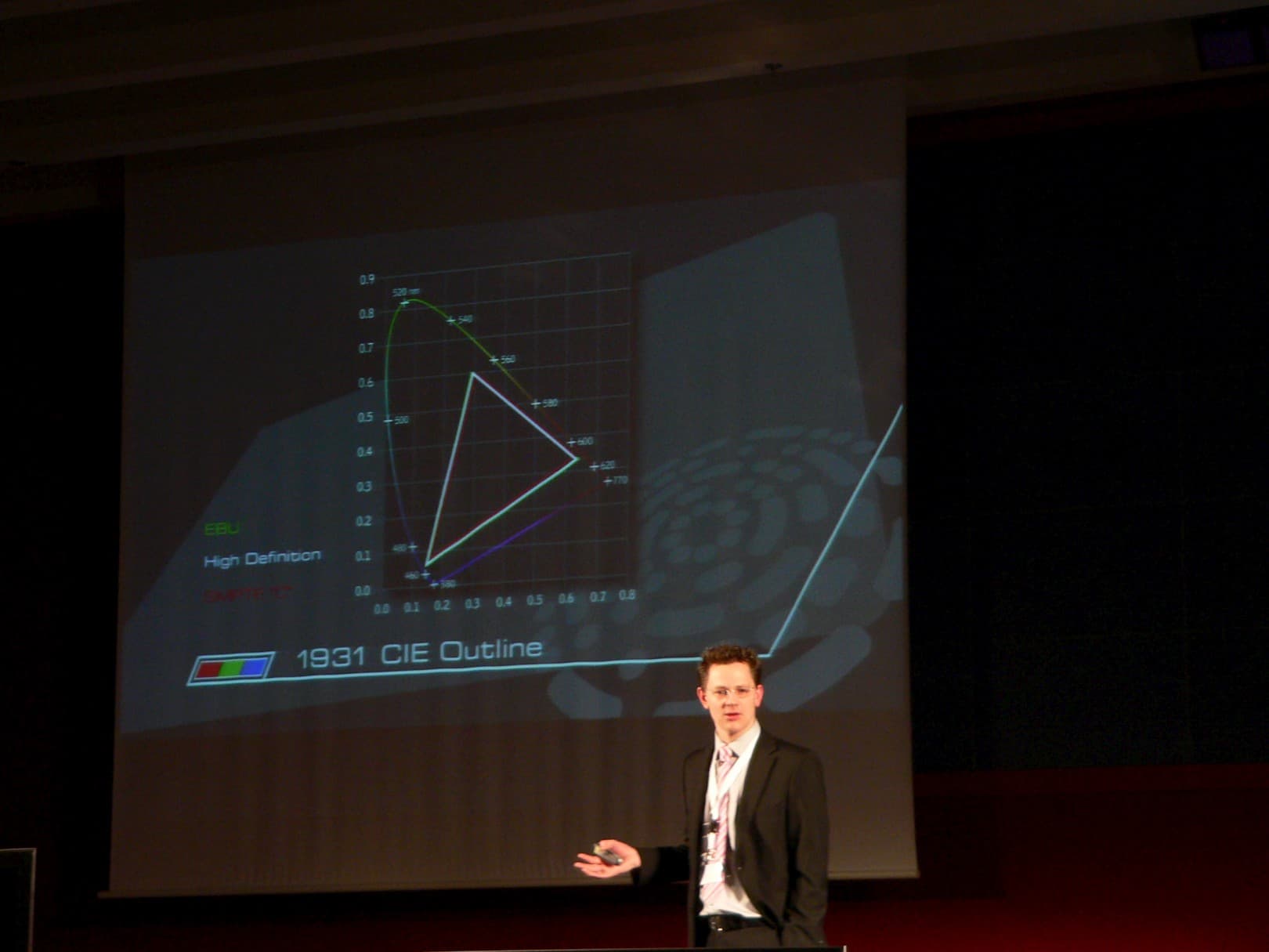 Между тем в основе цветного телевидения лежит все тот же стандарт CIE 1931, разработанный в означенном году, но принципиально не покрываемый устройствами с RGB-формированием цвета, тем более существовавшими на момент принятия большинства стандартов, связанных с цветным телевидением.