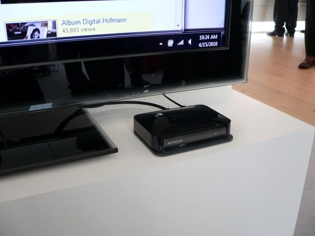 Для работы телевизора надо будет приобрести преобразователь, который будет устанавливать беспроводную связь с ноутбуком и перенаправлять поток на, скажем, порт HDMI. При демонстрации использовалось устройство NetGear. Розничная цена такого устройства в США (а оно уже должно продаваться) составляет 99 долл. США.