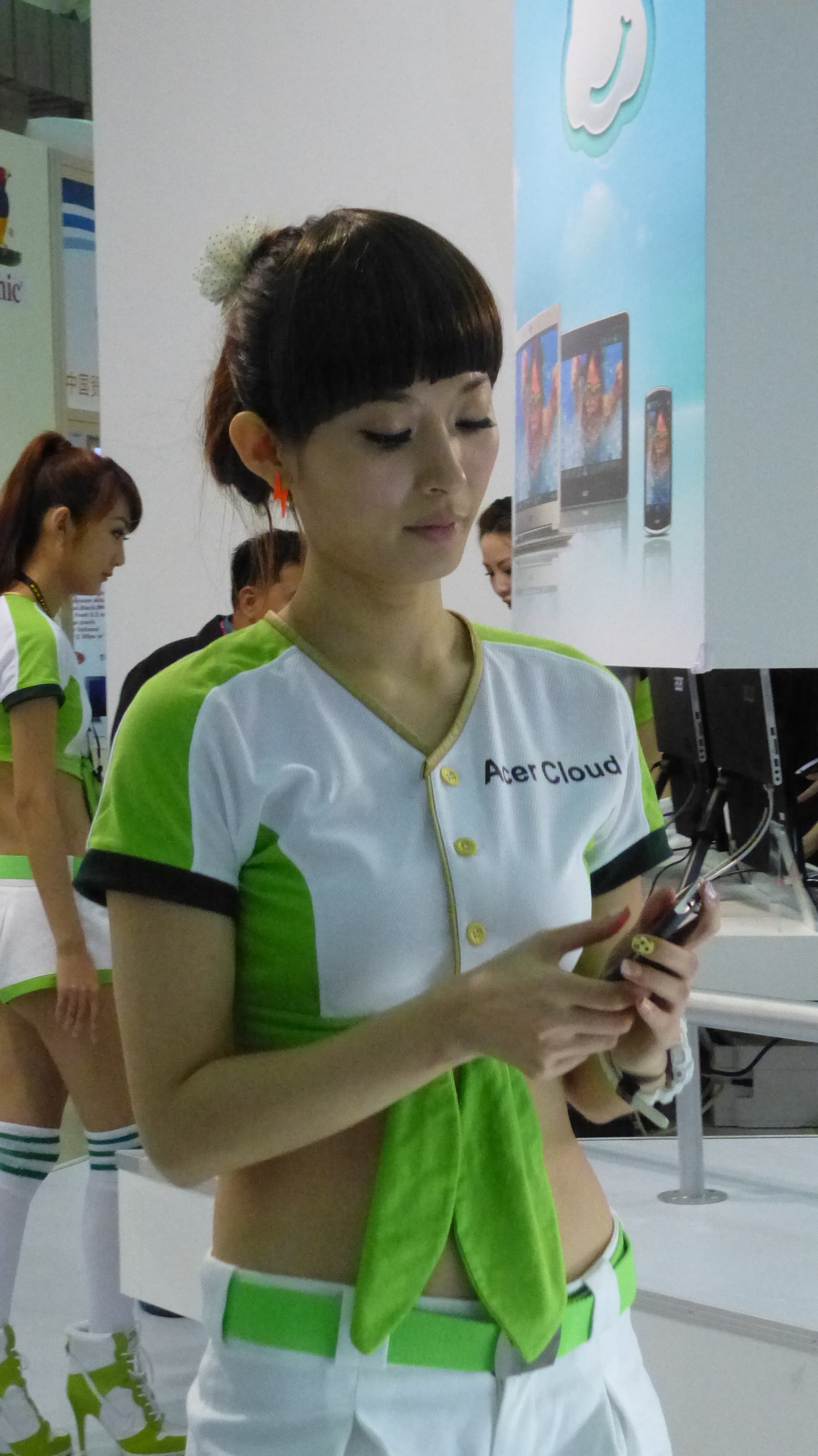 | Нет, это не близняшки. Просто они азиатки. К тому же, присмотритесь внимательней: видеокарты-то у них разные! | Жаль, не выписываю глянцевых журналов. Иначе непременно узнал бы модель и обзавёлся автографом. | Да, в руках у неё какое-то электронное устройство. Но разве это так важно? |