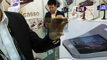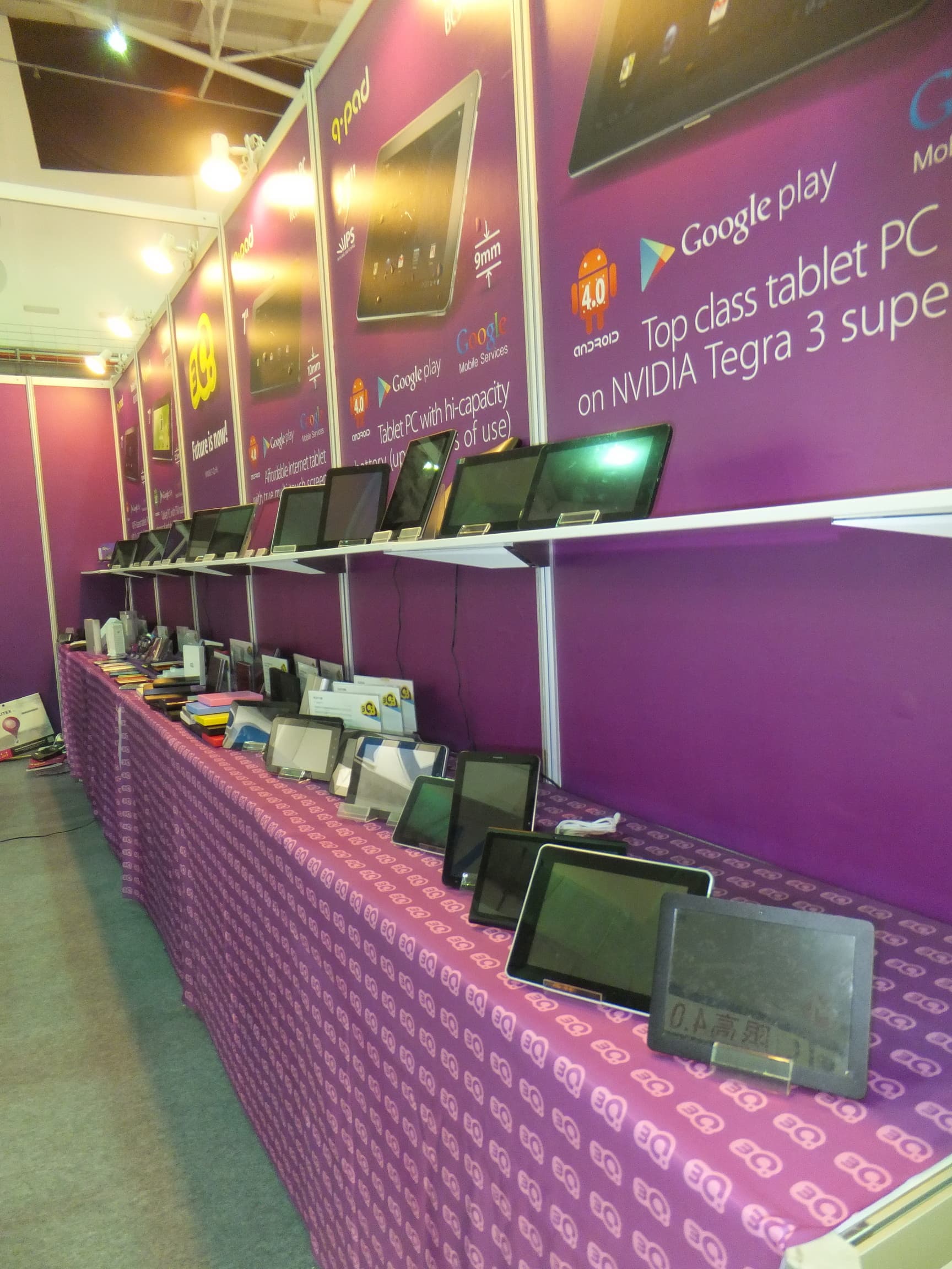 Примерно такими эмоциями был встречен стенд компании 3Q, широко известной на российском рынке своими недорогими медиаплеерами, неттопами, нетбуками, планшетами, переносными жёсткими дисками, аккумуляторами и прочими высокотехнологичными штучками. В основном, конечно, медиаплеерами и планшетами, выбор которых на русскоязычном сайте просто огромен. Однако на Computex-овском стенде 3Q, в отличие от сайта, ассортимент выглядел несколько иначе. Так, из медиаплееров было представлено… всего один. В то время как 80% стенда занимали планшеты. Ну, это и понятно — тренд. Мода, однако.