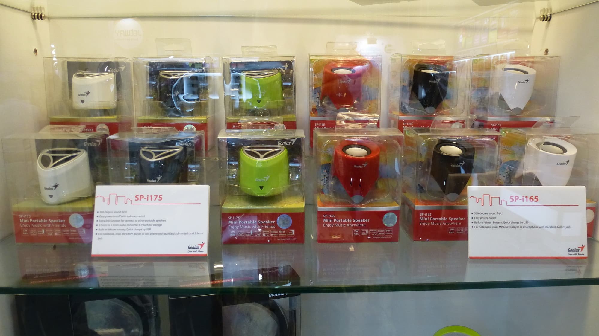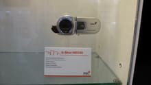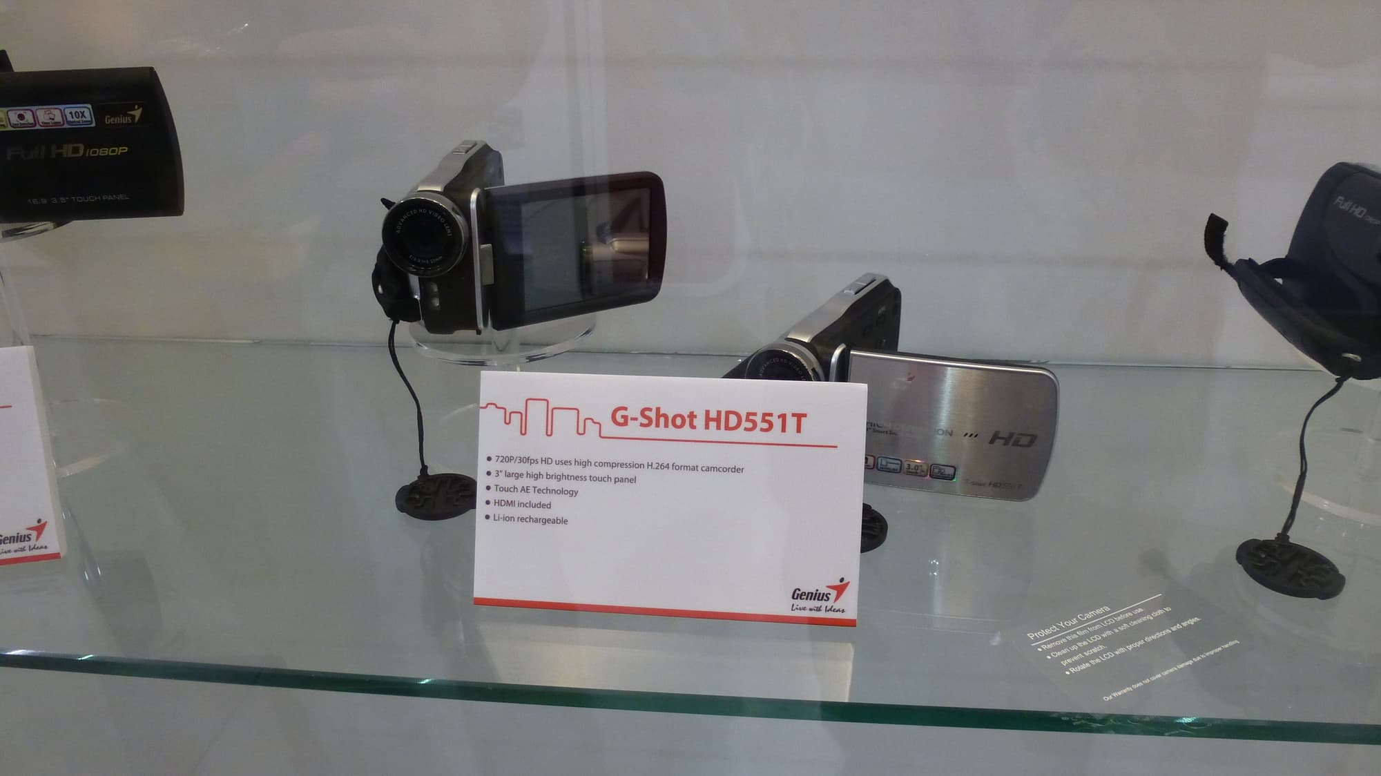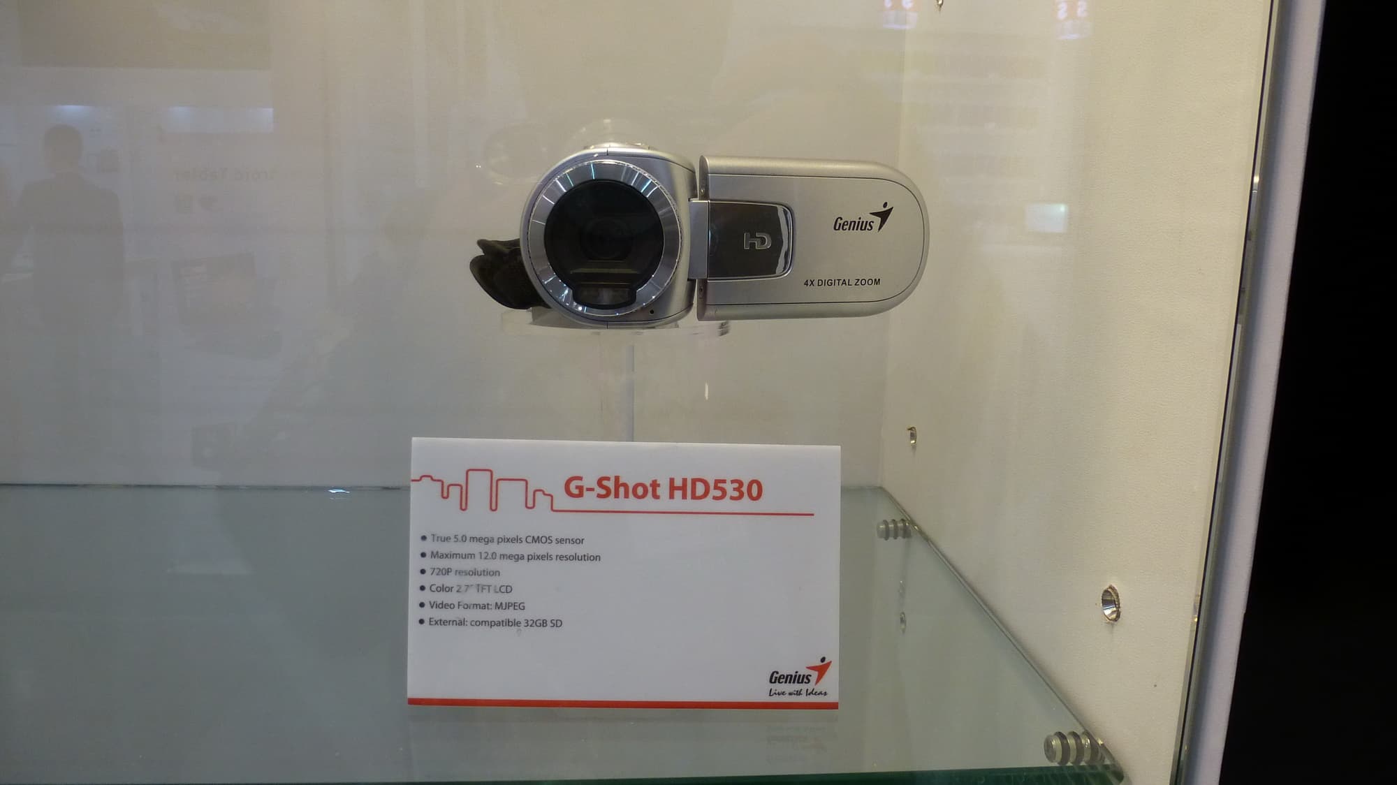 Буквально через несколько минут изучения этих стендов автор словил серьёзный шок: за стеклом Genius-овских витрин обнаружились несколько моделей видеокамер. Нет, не вебкамер, а именно видеокамер. То есть, настоящих камкордеров. С виду, по крайней мере. Правда, как оказалось, это были неработающие образцы.