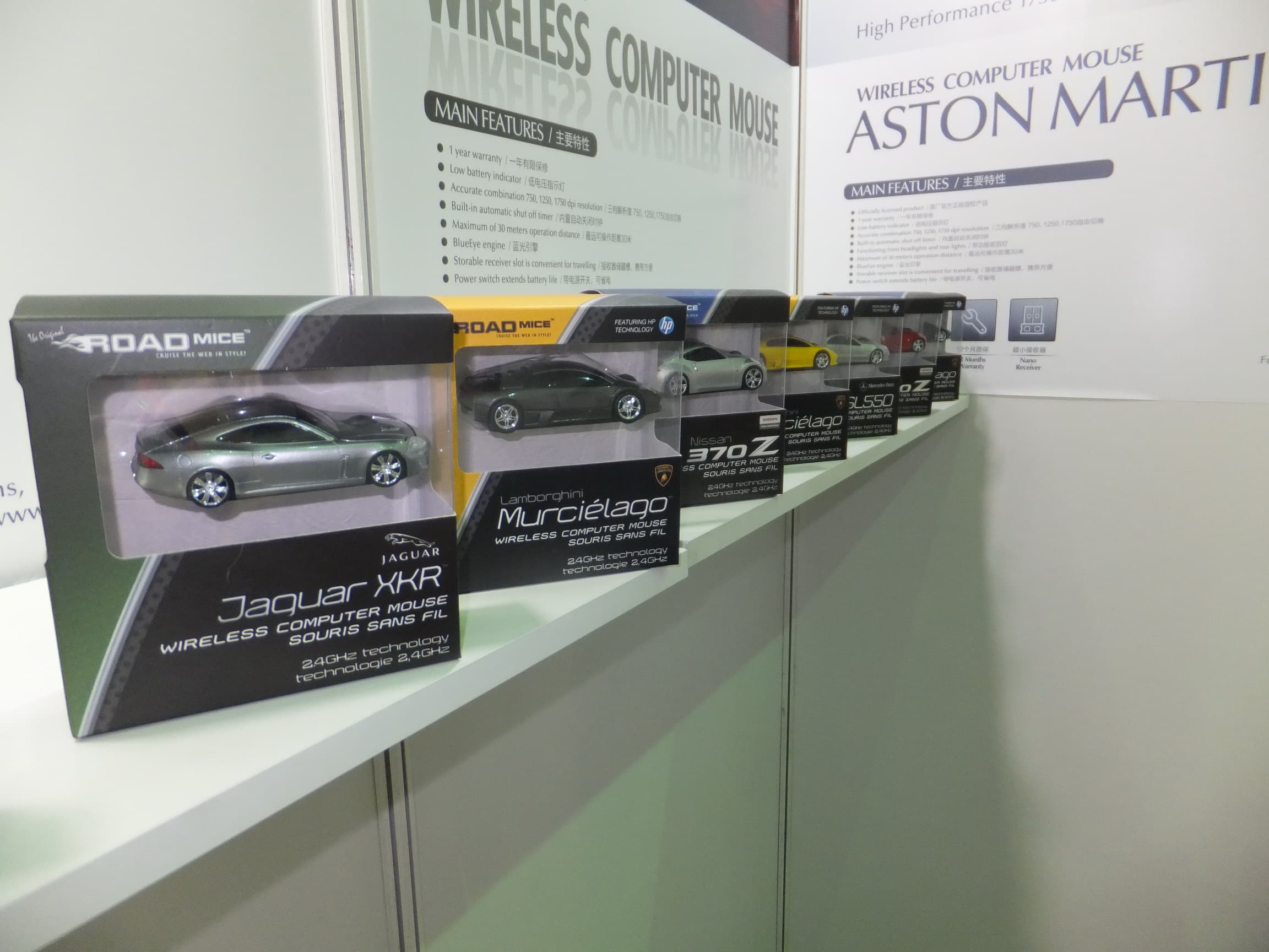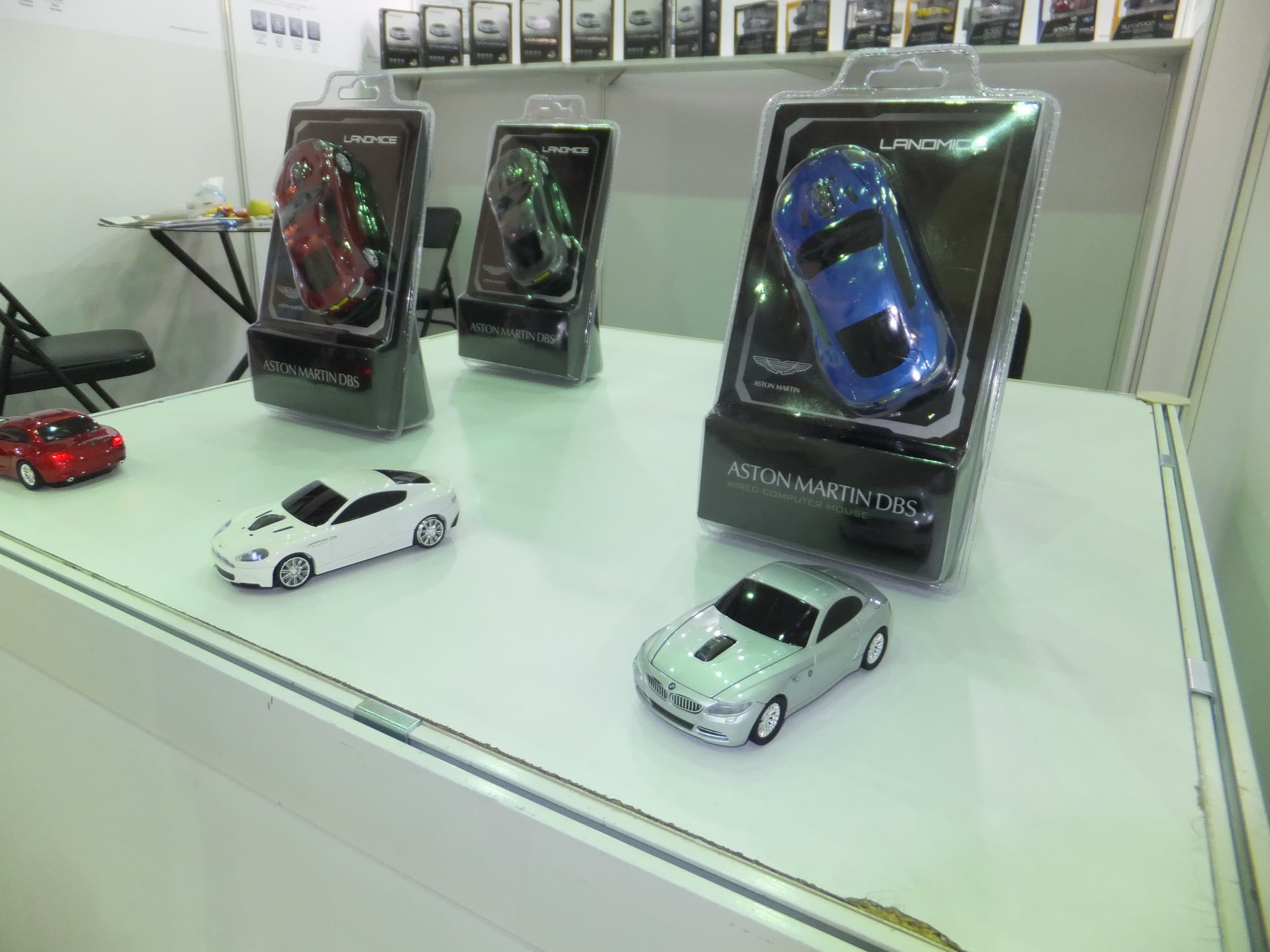 Посреди сонма стендов встречались такие, где экспонировались мелкомастшабные, но от этого не менее любопытные и оригинальные разработки. Так, порадовала одна из китайских компаний, Landmice Shenzhen Lamax Technology Co., LTD. Несмотря на узкий ассортимент выпускаемой продукции, она держала на выставке вполне нормальный стенд. Хотя, повторимся, номенклатура выпускаемого компанией товара очень уж узка, и ограничивается одними лишь беспроводными мышками. Зато необычными. Выполненными в виде точных копий автомобилей BMW и Aston-Martin.