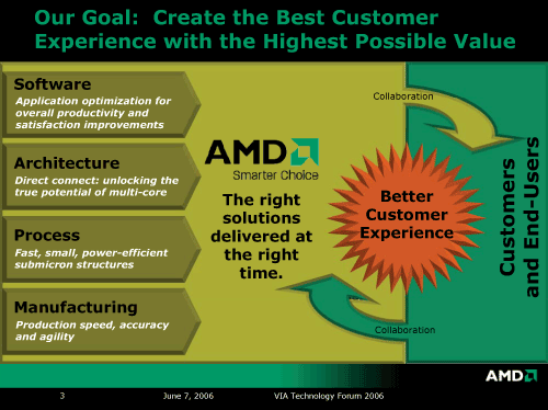 рассказала участникам технологического форума VIA о своих планах по выпуску процессоров и перспективных технологиях, разрабатываемых AMD для своих будущих продуктов (его доклад звучно именовался как «Следующая волна инноваций x86»).