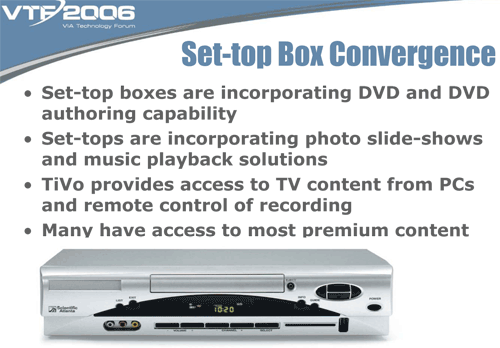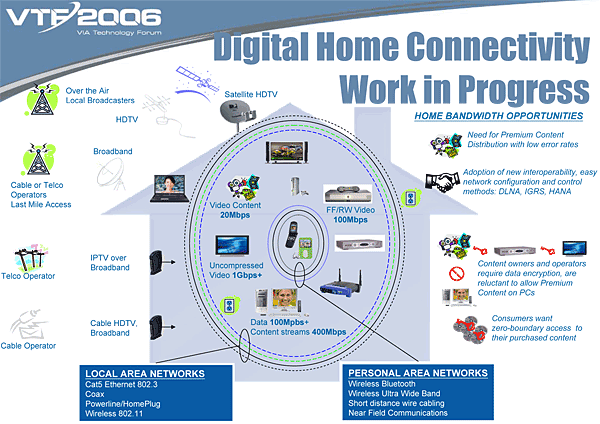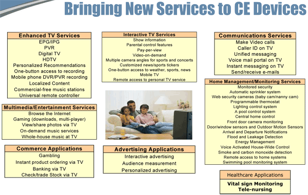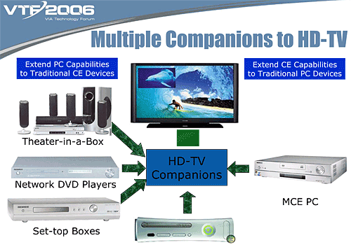 А также в распространении технологий персональных компьютеров на традиционные устройства потребительской электроники, придании им возможностей работы с HD-контентом и обмена/трансляции информацией, объединение нескольких таких устройств в единый центр развлечений (в одном корпусе).