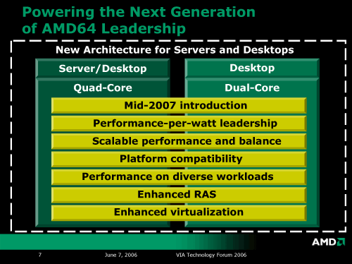 Ближайшей надеждой на технологический прорыв AMD считает свои четырехъядерные процессоры, выход которых намечен на 2007 год. Они будут обладать следующими преимуществами: