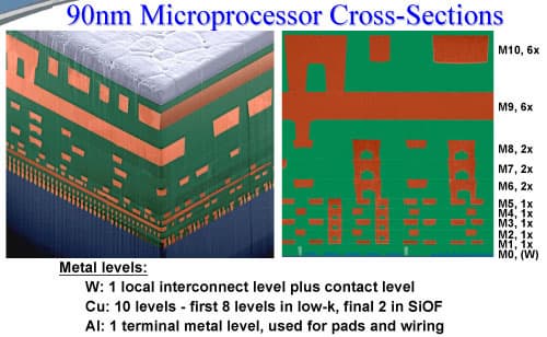 Кстати, у AMD в аналогичном 90-нм SOI-процессе для кристаллов процессоров используется 9 слоев межсоединений.