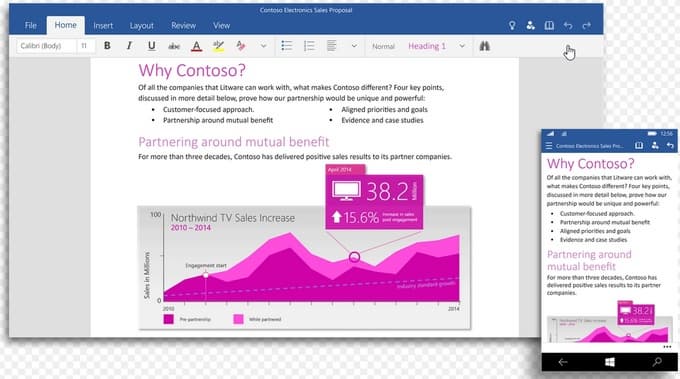 В продемонстрированных сценариях приложения уже работоспособны: так, Powerpoint способен не только открывать, но и редактировать сложные презентации с большим количеством контента. В демо-роликах видны и другие любопытные особенности — например, office insights: в правой части экрана открывается вертикальная лента, куда Bing выводит дополнительную информацию по интересующему топику.
