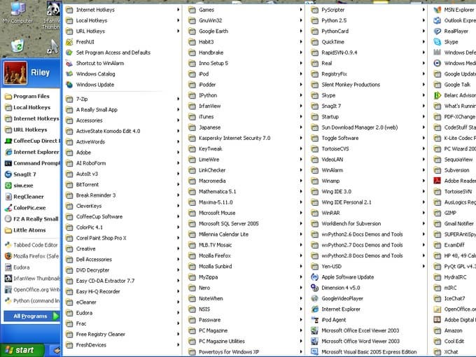 Новые аппы (универсальные приложения) и старые программы вперемешку показываются в общем списке программ в обычном меню «Пуск». Вообще, это меню, если приложений много, само по себе неудобное — бардак из огромного количества строк с длиннющей прокруткой в маленьком окошке. Помнится, в семерке были дополнения, которые показывали его «как в ХР» (это когда список открывался колонками на весь экран). В общем, так скоро до меню Windows 95 дойдем. А что, плоский стиль меню там уже был.