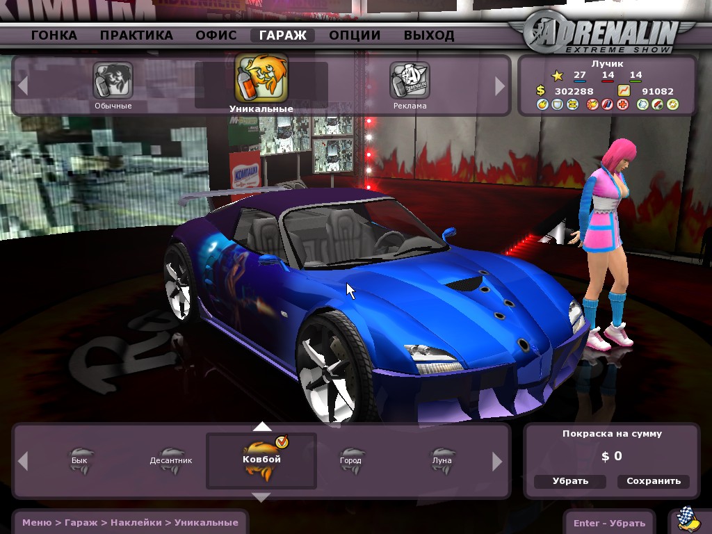 Данную игру нам уже доводилось видеть, еще в стадии сырой беты. Спустя восемь месяцев она добралась до прилавков и вызвала у аудитории весьма противоречивые чувства. ШоувуменОригинальная идея — совместить автомобильную аркаду с симулятором реалити-шоу, в общем-то, разработчикам удалась. Веселая, драйвовая, не слишком сложная и, в то же время, позволяющая с головой зарыться в дебри менеджмента игра обладает двумя существенными недостатками: крайне малым количеством автомобилей и трасс. Восемь (плюс еще 8 кабрио-вариантов) автомобилей, не лицензированных, но придуманных и спроектированных профессиональными автомобильными дизайнерами, увы, внешне весьма похожи — все как один толстые спортивные купе, страдающие, к тому же, довольно низкой детализацией. Трасс 16 (часть из них является модифицированными собратьями), при этом нарисованы они значительно лучше, чем машины (крайне редкое явление в жанре), за средневековый городок, авианосец и площадку для съемки вестернов архитекторам полагается заслуженный пирожок с полочки. Тем не менее, как трассы не крути, новые маршруты по ним не прокладывай — разнообразия это не прибавит. В десятый раз нарезая пять кругов по, практически, одной и той же трассе это, знаете ли, в некотором роде скучно. Но что поделаешь — контракт вынуждает. В начале игры нам предстоит выбрать одну из двенадцати девушек-гонщиц, которую мы будем всячески продвигать в глазах общественности, выигрывая заезды, зарабатывая рейтинг, выполняя рекламные контракты и все такое прочее. К биографии каждой из участниц разработчики подошли со всей ответственностью, равно как и к моделированию уникальной внешности для каждой девушки. Еще с большим вниманием отнеслись к экономической части: огромное количество контрактов с реально существующими фирмами, у каждой из которых свои требования. Кому-то достаточно победы в трех заездах, более привередливые конторы требуют, чтобы вы обязательно выступали на машине черного цвета, или с колесами второго уровня, пусть даже это будет в ущерб результатам гонки. Отсюда, кстати, такое обилие рекламы на трассах и экранах разнообразных меню, product placement подобного уровня из отечественных игр использовал, пожалуй, только Parkan 2. Некоторые товарищи имеют свойство возмущаться, не понимая двух простых вещей: во-первых, в той же NFS: Most Wanted рекламы ничуть не меньше, только большинство рекламируемых брэндов отечественному игроку не знакомы, посему и не вызывают такой бури негативных эмоций, а во-вторых — это грамотный маркетинговый ход, принесший, надеюсь, весьма хороший доход компании и давший возможность для дальнейших разработок и повышения качества продукции. Остров свободы и одесская канализацияИтак, девушку выбрали, машинку ей прикупили, контракт заключили. Рекомендуется, помимо основного договора заключать дополнительные, а также проводить PR-акции в различных изданиях (тоже, кстати, реально существующих) — в случае победы это принесет дополнительный доход и повысит рейтинг. Следует обратить внимание и на то, что многие контракты являются взаимоисключающими и, чтобы заключить один, требуется до конца выполнить или разорвать уже существующий. Начальный капитал, как нетрудно предположить, позволяет купить самую плохенькую машинку и денег на тюнинг не остается, так что первое время придется п