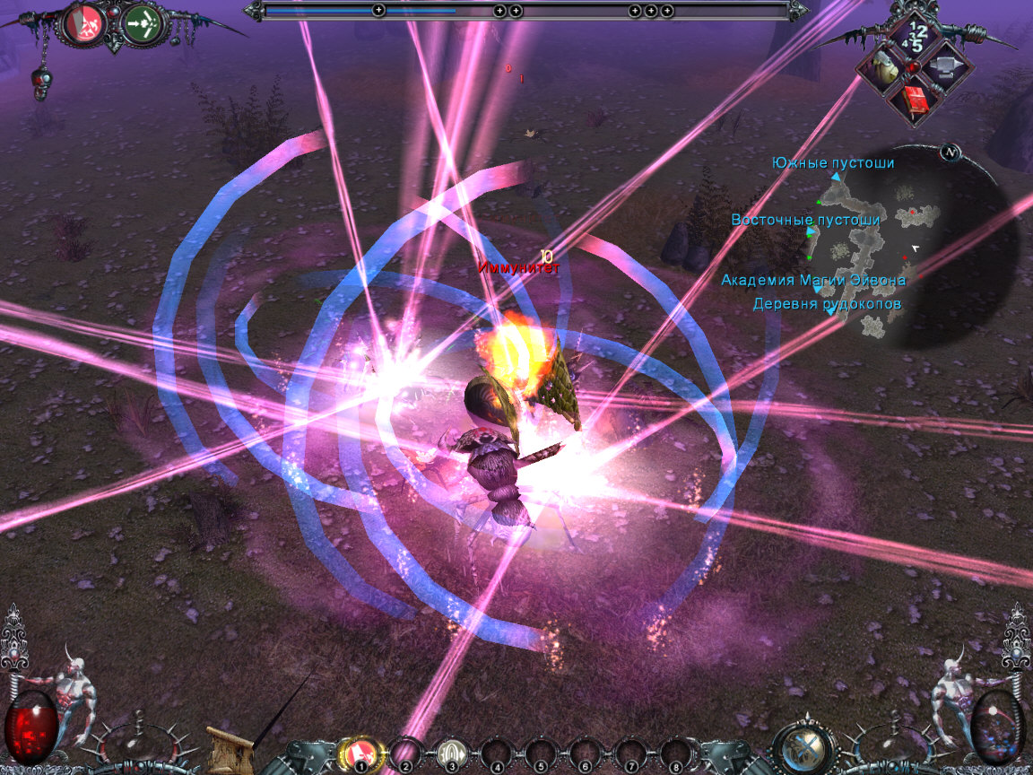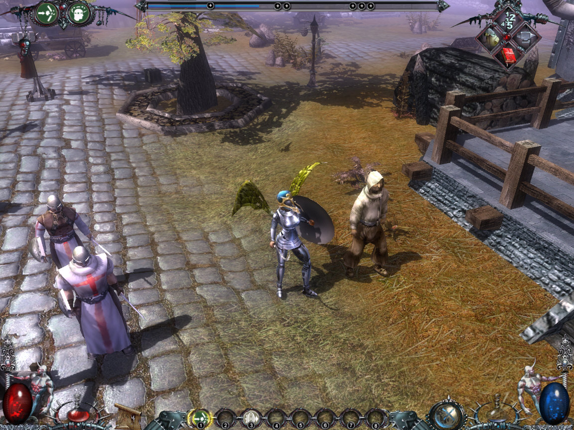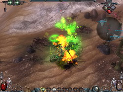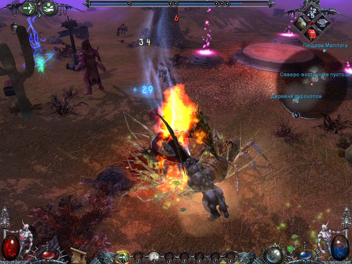 Почему-то старинная мечта многих разработчиков «убить Diablo» всегда реализовывалась по принципу копирования всего хорошего, что было у жертвы плюс добавление нескольких собственных фишек. Иногда получалось симпатично. У представителей российского геймдева вышеназванная операция как-то не получалась, да и вообще с «классическими» RPG/Action-RPG/и т.д. с самого начала не заладилось, за редким исключением, вроде «Проклятых Земель». Гарри Поттер на тропе войныЗавязка не слишком оригинальна: злого бога Модо в воспитательных целях ссылают на землю и заключают в человеческое тело. Естественно, такое положение дел его не устраивает. Нам, в роли лучшего выпускника магической академии предстоит разыскать Модо и завершить воспитательную работу, либо присоединиться к нему и помочь в уничтожении земли — известная доля нелинейности в игре присутствует. Генерация персонажа заключается в выборе одного из четырех героев — пожилого пузатого монаха (срисован с Брата Тука, не иначе), «жены булочника», цыганки и субтильного двойника Гарри Поттера. Первые два персонажа изначально предназначены для ближнего боя, остальные предпочитают магию. Различие в стартовых характеристиках, впрочем, незначительно, кроме того, развивать героя можно в любом направлении, так что это, скорее, косметическая функция. Здесь же надлежит выбрать характер персонажа и его «сущность», что уже существеннее. Для трех характеров доступны различные наборы квестов, а злым живется тяжелее, нежели добрым. Выбор между смертным и бессмертным сродни выбору между softcore и hardcore режимами в Diablo II. Базовых характеристик всего три: сила (влияет на силу удара и максимальный вес багажа), живучесть (максимум здоровья, разумеется) и магия (максимум маны, как ни странно). Этот скромный набор с лихвой компенсирует внушительное количество скиллов и еще более широкий выбор заклинаний. Ограничений по классу персонажа нет, как, впрочем, и самого понятия «класс». Развиваться можно в любом направлении и это направление лучше выбрать заранее, дабы не получить небоеспособного героя, умеющего всего понемногу. Основной упор делается на магию, представленную 12 школами, от классических огненных и ледяных заклятий, до, собственно, «магии крови». Фича, о которой так любят говорить разработчики — возможность комбинации заклинаний. Комбинируются спеллы попарно, например, в primary-слот устанавливаем файрболл, а в secondary — пассивный скилл мастерства огня, увеличивая повреждения и добавляя к нему некий бонус. Грубо говоря, можно поставить второй файрболл, обеспечив двойной урон, а можно заклинание совершенно другой школы. Однако не все заклинания можно совмещать, заботясь, видимо, о балансе, потенциально смертоубийственные сочетания разработчики запретили. Грохнуть сверху булыжником и, одновременно, проткнуть снизу кольями нельзя. Но никто не мешает поставить другую комбинацию на следующую «закладку» и поочередно пользоваться несколькими наборами, благо переключается быстро и во время «перезарядки» одного заклинания, другое вполне работает. Для изучения заклинаний и повышения уровня уже известных требуются очки заклинаний, выдающиеся отдельно от скиллпоинтов, а также свиток с соответствующим спеллом. Любители ближнего боя останутся разочарованными. Несмотря на то, что оружия в игре много, помахать чем-ни