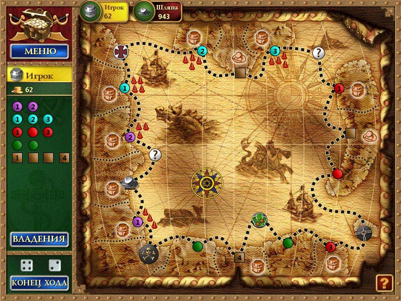Предпринимателем ты можешь и не быть, но в «Монополию» играть обязан, - еще в 30-е годы прошлого века сказали шустрые американцы. Игроки в погоне за деньгами и прибылью, бросали кубики и «обегали» игровое поле, скупали недвижимость и предприятия, обдирали конкурентов до нитки. А последнее так похоже на обычных пиратов. А где лучше всего жилось пиратам? Правильно, на Карибах. Долой Дрейка и испанского короля, Тортуга будет принадлежать свободным морским разбойникам! Бросайте «кости», капитан, и приготовьтесь к абордажу. На четырех картах по очереди бросают два кубика и плавают по «клеткам» несколько реальных и компьютерных игроков. У каждого есть небольшой стартовый капитал, который пополняется при очередном обрыве финишной ленточки. Удобные гавани, порты крупных городов, атоллы и островки, защитные форты и бастионы, шахты, - все это стоит денег. За аренду, отдых команды и ремонт корабля сумма небольшая, тем более что понравившийся уголок можно и нужно приобрести, дабы потом не платить ни одного пиастра, а только «стричь купоны» с проплывающих мимо. И пусть не ноют, что дорого. В тюрьму, на мель или в казино можно попасть совершенно бесплатно. За решеткой сложно угнаться за конкурентами, и бегство с подкупом охраны - прекрасная альтернатива томительному заключению на три хода. Дочки губернаторов, дуэли с таинственными убийцами, похищения, драки в тавернах и легендарные сокровища - все это сектор «шанс», на котором везение уступает место козням сценариста. Покупка земель одного цвета открывает возможности для строительства своей пиратской эскадры, намертво бросившей якорь в порту приписки и строго стерегущей фарватер. Попадание в засаду к такому флоту означает серьезные финансовые потери для любого чужака. Стильно и со вкусом произошло перерождение картонной «настолки» в виртуальном мире. Металлические черепа, треуголки, бочонки, пушки - эти игровые фишки, обозначающие присутствие игроков на карте, дополняют сценки и ситуации карточек «форс-мажора» и «шанса», которые окутывают игрока авантюрной «пиратской атмосферой». Diagnosis: Затягивает
