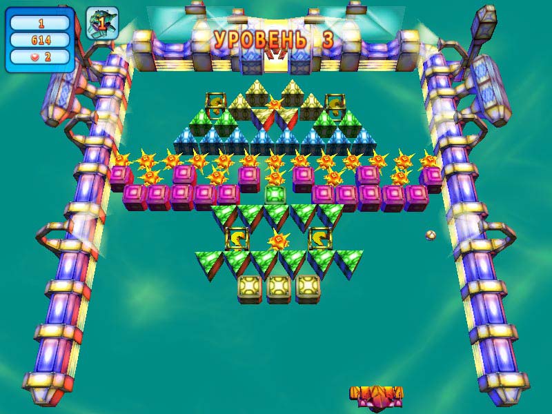 Еще один арканоид торопится захватить наше личное время. На этот раз игрок выступает в роли марсианского гладиатора, которому предстоит арену за ареной пробивать себе свободу. Доской на реактивной тяге отбиваем шарик, который в радостной деструктивной эйфории будет носиться замысловатыми траекториями по всему экрану. Потихоньку разнесем по кирпичику выстроенные для кровавых забав марсиан декорации. Выпущенных на арену боевых роботов и дроидов разберем на запчасти. А устраивать беспорядок будет не только одинокий шарик, но и ракеты с самонаведением, лазеры и проверенный временем и незадачливыми марсианскими монстрами дробовик. Все это «добро» предстоит добывать прямо на поле боя - благо бонусы высыпаются из разбитых кирпичей и роботов часто. У разработчиков получился нормальный арканоид - с традиционно-динамичным игровым процессом, неплохим уровнем сложности, большим количеством арен (около 200), только слабенький «футуристический дизайн» и простенькая графика могут отпугнуть потенциальных игроков от данного представителя жанра. Diagnosis: Убить время