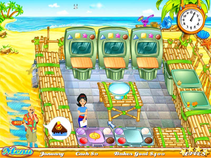 Бисквиты, кексы, пироги, рулетики и свадебные торты - свежие и распространяющие дивные ароматы - приятно радуют глаз, возбуждают аппетит и пугают фигуру. Героиня игры - Джил, спокойно занималась семейной пекарней и несла людям «разумное доброе вкусное». Но пришел опасный и сильный конкурент - совсем рядом открылся новый супермаркет сладостей компании «Мега Рынок». Закрываться без борьбы и идти на поклон к конкуренту - не в правилах потомственных пекарей и кондитеров. Приготовьтесь и вдохните глубже, ведь начинается локальная битва за клиента. Наше оружие: вежливость, расторопность, богатство ассортимента, потакание капризам клиентов, и огромное количество семейных рецептов. Весь игровой процесс - это уже знакомая «кухонно-ресторанная беготня» (описание одной из лучших игр представителей данного жанра смотрите в нашем предыдущем обзоре казуальных развлечений), когда нужно успеть принять заказ, залить тесто в одну из нескольких форм, отправить тесто в печь, затем вытащить готовый корж и намазать его джемом, сливочным или шоколадным кремом. И торжественно вручить вкуснятину заждавшемуся клиенту. Со временем кухня наполнится новыми духовками, кофеваркой, столом для упаковки, ведь, кроме изготовления сладостей придется их еще и украшать по вкусу покупателей. А вкусы у них совершенно разные. Промоутеры в костюмах розовых плюшевых зайцев дожидаются кремового торта. Без свежеиспеченного бисквита в форме елки не уйдет из нашей кондитерской настоящий Санта-Клаус. Веселые менеджеры и угрюмые бухгалтеры любят после нудной работы поэкспериментировать с коржами и начинками. Флегматичные тинэйджеры с наушниками в ушах желают кексы слаще и проще. Жизнерадостные отцы семейств пытливо всматриваются в список покупок и сверяют полученный торт с описанием, который дали домочадцы. Не разочаруйте их и обслужите по высшему разряду. Бегом к печке - пора доставать квадратный шоколадный корж, который нужно успеть украсить взбитыми сливками и фруктами. Не забудьте поставить фарфоровую статуэтку и завернуть предварительно заказанный свадебный торт. Быстрее, ловчее, оперативно работаем, одним словом. Иначе безжалостный супермаркет за углом за свои субпродукты и эрзацы легко получит деньги всех этих добродушных простаков, привыкших к вкусной домашней выпечке по маминым и бабушкиным рецептам. Простое «мышекликательное» управление и постепенное усложнение заданий позволят быстро освоиться «на месте». Забавная мультяшная анимация клиентов и акробатика с соблазнительными формами бисквитов и тортиков затягивает на долгое время. Diagnosis: Затягивает