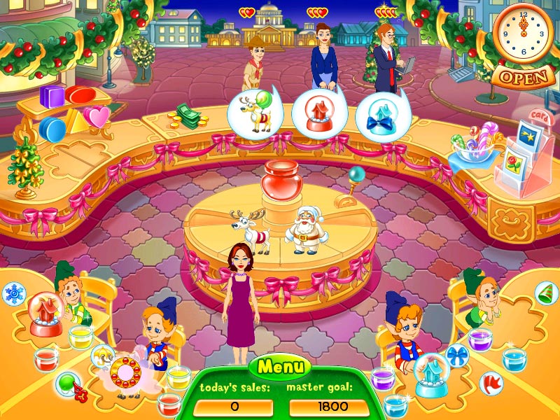 Под Новый Год принято отдавать старые долги. Вот и к старенькой бабушке нагрянули кредиторы из банка. Вынь да положь им под елочку десять тысяч вечнозеленых бумажек, которые когда-то взяла в кредит на магазин игрушек. Время поджимает и любимая внучка берется спасать семейное дело. Игроки привычными движениями мыши распределяют обязанности между помощниками-эльфами, а те - без устали красят заготовки, украшают подарки бантиками, а сувенирные фигурки - зонтиками и прочей мишурой. Покупатели народ привередливый. Нет, подарки они требуют самые разные, но выполненные исключительно по индивидуальному заказу. Розового оленя? Легко. Карманного Санту под зонтиком? Не вопрос! Разношерстная же публика отличается только терпеливостью. Бойскаутам все требуется здесь и сейчас. Бизнесмены и бизнес-леди торопятся по своим делам не меньше пионеров. Санта Клаус вечно опаздывает на очередной корпоративный утренник, а пенсионеры готовы до упора стоять в очереди за своим подарком. Только вечно молодой Элвис никуда не спешит, поднимает настроение окружающим торопыжкам, что дает неутомимым работникам несколько секунд форы. Очередной «мышекликательный» симулятор по обслуживанию нужд населения выглядит ярко и празднично. Конвейер по производству подарков постепенно набирает обороты, но расторопный игрок успеет справиться с заказом любой срочности. Традиционное улучшение декораций и бонусные конфетки прилагаются. Diagnosis: затягивает