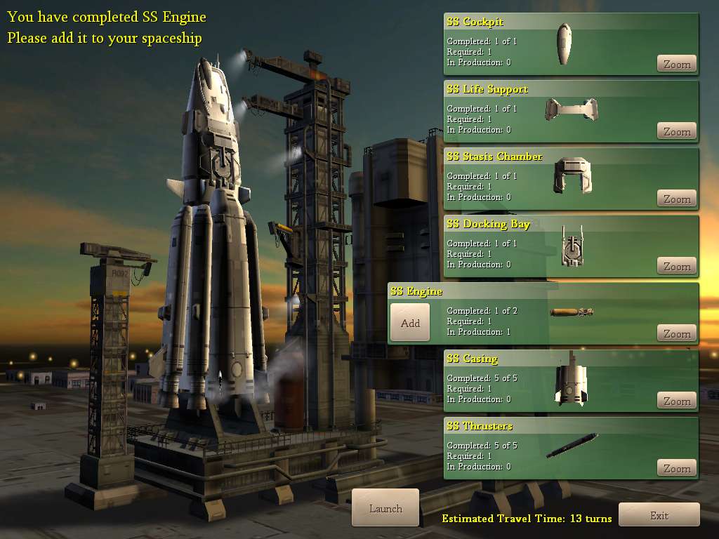 Подготовка к запуску космического корабля теперь отображается трехмерной моделью. После завершения строительства отдельных компонентов, игрок получает возможность выбрать внешний вид детали. Вернулось и старое правило – не обязательно отправлять в космос 100% завершенный корабль, но и полет такой экспедиции может прерваться в любой момент.