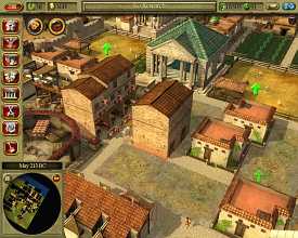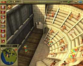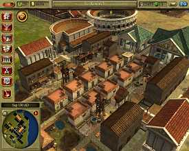 Угол наклона камеры не меняется, высоко ее не поднять. А здания со временем вытягиваются ввысь и заслоняют маленькие, создавая ненужную неразбериху. В довершение всех бед, появляется очень странный глюк с курсором. По неведомой причине он выделяет вовсе не то, на что указывает пользователь, а захватывает объект в стороне. Иногда - далеко в стороне. Так что придется долго оттачивать новое искусство - попадание в здания и, черт бы их побрал, горожан, которые назло еще и бегают, суетятся, занимаются своими делами. Парадокс, конечно, но в этом и есть главная изюминка игры. Как и в Stronghold, город живет своей жизнью, независимой от желаний простого смертного. Люди имеют распорядок дня, ходят на работу, производят товары, возвращаются домой, идут за покупками, потом устремляются в театры, питейные заведения, бани. Все это подкрепляется превосходной анимацией. Женщина ли это хлопочет в доме по хозяйству, муж ли это работает в поле, раб ли это топчется на помосте в ожидании покупателя - фальши не чувствуется. Если бы не жутковатая графика, можно было бы даже любоваться. У искусственного интеллекта наблюдается только одна проблема - отсутствие реакции на внешние раздражители. Начнется пожар, или притопает вражеское войско, а жители по-прежнему будут хлопотать, не обращая внимания на близкое пламя и бегающих рядом воинов.
