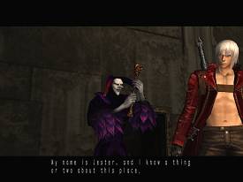 Главные герои DMC3 - готовые клоуны для бродячего цирка, а заодно коллекция аниме-стереотипов. Один из них, по совместительству суперзлодей, свою роль не скрывает, вышагивает в шутовском наряде, сверкает желтыми зубами и вовсю кривляется. Данте, наш седовласый мальчик Данте с кожаным плащом на голое тело, в роликах показывает свою неимоверную крутость, ловко убивает врагов из пистолета, рубит их мечом, делает всевозможные выкрутасы, вроде поездки на мотоцикле по отвесной стене и использования пролетающей мимо ракеты в качестве скейтборда, постоянно делает вид, что враги ему по-барабану, шутит плоские шутки и смеется в лицо опасности юношеским голоском. Его братец, такой же седовласый мальчик, бурчит на белый свет тоном обиженного ребенка, чем изрядно выводит во время своих душещипательных речей. Ну, и, конечно же, есть девочка в короткой юбчонке, красных сапожках, накрахмаленной белой рубашечке и огро-о-омной базукой в руках - по эротическим комплексам ее создателей можно отдельный труд ваять. Рефлексирующая барышня предпочитает начинать любой разговор, предварительно выпустив пулю в лоб собеседнику, чем удачно вписывается в предложенную шутовскую партию.