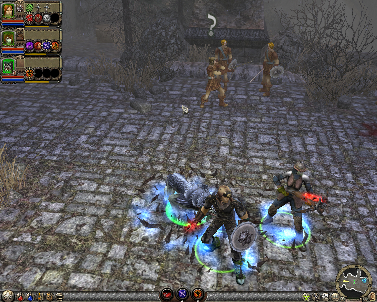 Ассортимент продавцов генерируется случайным образом, и купить что-либо стоящее почти всегда проблематично — даже из обычных монстров выпадают более достойные предметы, тут же грабительские расценки даже на откровенный, никому не нужный ширпотреб. Пузырьки со здоровьем и маной тоже нет никакого смысла покупать — это добро тоннами вываливается практически из всех убиенных недругов (кстати, по доброй традиции из пузырька отпивается ровно столько, сколько нужно для восстановления здоровья, однако сам процесс лечения стал медленнее). А вот лишние магические или сетовые предметы лучше не продавать (денег и так всегда хватает), а пустить на кормежку своему любимому питомцу. Да, помимо знаменитых осликов теперь в ассортименте местных зоомагазинов имеются скорпионы, элементали, а после выполнения определенных квестов и другие зверушки. Я, например, предпочел Dire Wolf, за сущие копейки получил в команду хилого щеночка, исправно скармливал ему весь подобранный скарб и, через некоторое время, вырастил матерого волчару, грызущего всех и вся со страшной силой, да еще и вешающего на партию собственную мощную ауру. Животноводу на заметку — чем ценнее предмет, скормленный зверюге, тем быстрее растет шкала его «взросления».