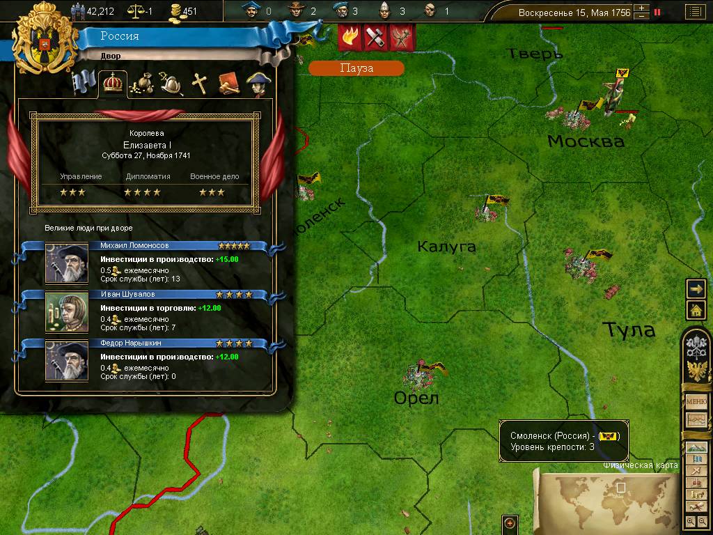 При произнесении словосочетания «Великая Глобальная Стратегия» в умах игроков моментально возникнут образы игр серии Total War и Civilization. Первая утвердила новые графические стандарты и предложила простой, но понятный менеджмент гигантскими империями в период экспансии и захвата новых земель. Вторая бросила на геополитические весы целые народы, их войны, многовековую культуру, технологические достижения и научные открытия. Но есть еще одна Великая. Которая не предлагает собственноручно вести полки в атаку или гнаться за технологиями. Ее удел - рутинная и сосредоточенная работа по управлению государством, поддержка стабильности, развитие торговли, внимательное распределение финансов и осторожная внешняя политика. Военный поход за тридевять земель? Окстись, царь-батюшка, в сей бюджет вояж не заложен.