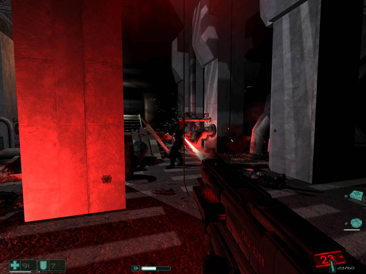 Новое оружие как раз предназначено для таких вот мясорубок. Пулемет с огромным боезапасом, турели-липучки и «луч смерти», позаимствованный из Quake 3. Все это позволяет расправиться с толпой клонов любого размера за считаны секунды. Не обошлось и без новых врагов. Огромный-преогромный двуногий робот-цыпленок, притопавший из фильма «Робокоп». Бронированный клон со щитом, вооруженный ручным пулеметом. И призраки-невидимки с горящими глазами. Если первых можно расценивать в качестве редких мини-боссов, то последний тип врагов определенно удался. И больше всего - с психологической точки зрения. Жутковатое зрелище, когда видишь скользящие по земле тени без хозяев.