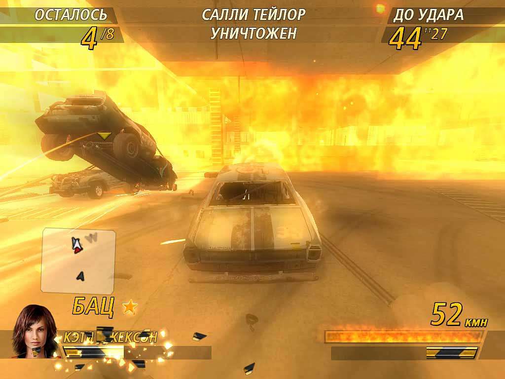 Модель повреждений стала гораздо более продвинутой по сравнению с оригиналом. Потеря выхлопной трубы и ветрового стекла - цветочки по сравнению с вырванными дверьми и отлетающими покрышками, символизирующими скорый рестарт. Даже аккуратные спорткары, стоящие тысячи кредитов, после пары секунд заезда выглядят не лучше консервной банки из ближайшего помойного ведра. Ирония заключается в том, что столь неаккуратное отношению к своему «питомцу» вознаграждается восстановлением заветного N2О. Закись азота расходуется перманентно на протяжении всего заезда и является одной из самых полезных субстанций в игре. Тем паче, что на старте баки пусты, и быстрое его накопление способствует скорейшему уходу от конкурентов в отрыв. В схватке «внешний вид VS первое место» явный фаворит очевиден - и это вполне в духе FlatOut 2.