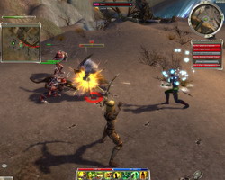Разумеется, квест — не безопасная прогулка за городские стены, поскольку на пути полным-полно врагов, стремящихся урвать свое. Иногда чар банально погибает под шквалом ударов и, если некому его оживить, он появляется в определенных местах, после чего может спокойно продолжать путь. Штрафов за гибель героя, можно сказать, нет, и вещи с вас не падают. Единственное, что напоминает о гибели — это пятнадцатипроцентное уменьшение максимального количества хитпойнтов и маны, причем восстановить их можно двумя способами — убивать как можно больше боссов или же просто закончить миссию и появиться в городе. Только надо учесть, что при повторном выходе за ворота мобы распаунятся снова, и опять придется продираться к цели с боем. Некоторые миссии и квесты можно выполнить и без использования грубой силы. Существует прием под названием Mission Run, когда игроки просто бегут до нужной локации, не обращая внимания на монстров. До цели или до следующего портала, как правило, добегает только один-два чара, остальные лежат в тенечке и скучают. Иногда забег заканчивается полным провалом, и приходится начинать все сначала.