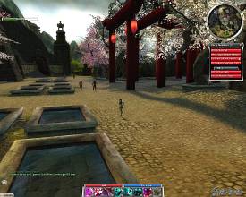 Чтобы увидеть красоты нового материка, обладателям оригинала вовсе не обязательно начинать нового персонажа. Достаточно найти нужный порт и переплыть по морю аккурат в объятия очарования восточной стилистики. При создании Канта разработчики смешали воедино японскую и китайскую культуры, получив в результате удивительный по красоте мирок. Даже портовые трущобы с канализацией умудряются радовать глаз эффектно подобранным сочетанием цветов и игрой света. Все эти горы, реки, уютные домики с характерными крышами удачно контрастируют со «старым» мрачно-фентезийным миром континента Тирии (Tyria). Несмотря на то, что GW не принадлежит к классу технологичных онлайновых RPG, обляпанных со всех сторон шейдерами, она является, пожалуй, самой красивой с точки зрения дизайна и пластики персонажей. Разнообразие здесь возведено в культ. Даже тот маленький пятачок суши в Factions, на котором идет подготовка перед выходом на «большую землю», обеспечивает прогулку по фермерским полям, заснеженным вершинам, скалистому прибрежью, знойным пляжам, ухоженным садикам, зеленым рощам, туманным болотам, не говоря уже про стилистические отличия в архитектуре множества городков. Усиливают погружение в мир Factions и потрясающие лирические мелодии, вобравшие в себя этнические мотивы Азии, от известного «игрового» композитора Джереми Соула (Jeremy Soule). Если вы знакомы с музыкальными дорожками TES3: Morrowind, TES4: Oblivion, Dungeon Siege II, Neverwinter Nights, Icewind Dale, Star Wars: Knights of the Old Republic, Warhammer 40,000: Dawn of War или просто Guild Wars, то примерно представляете качество оформления Factions.