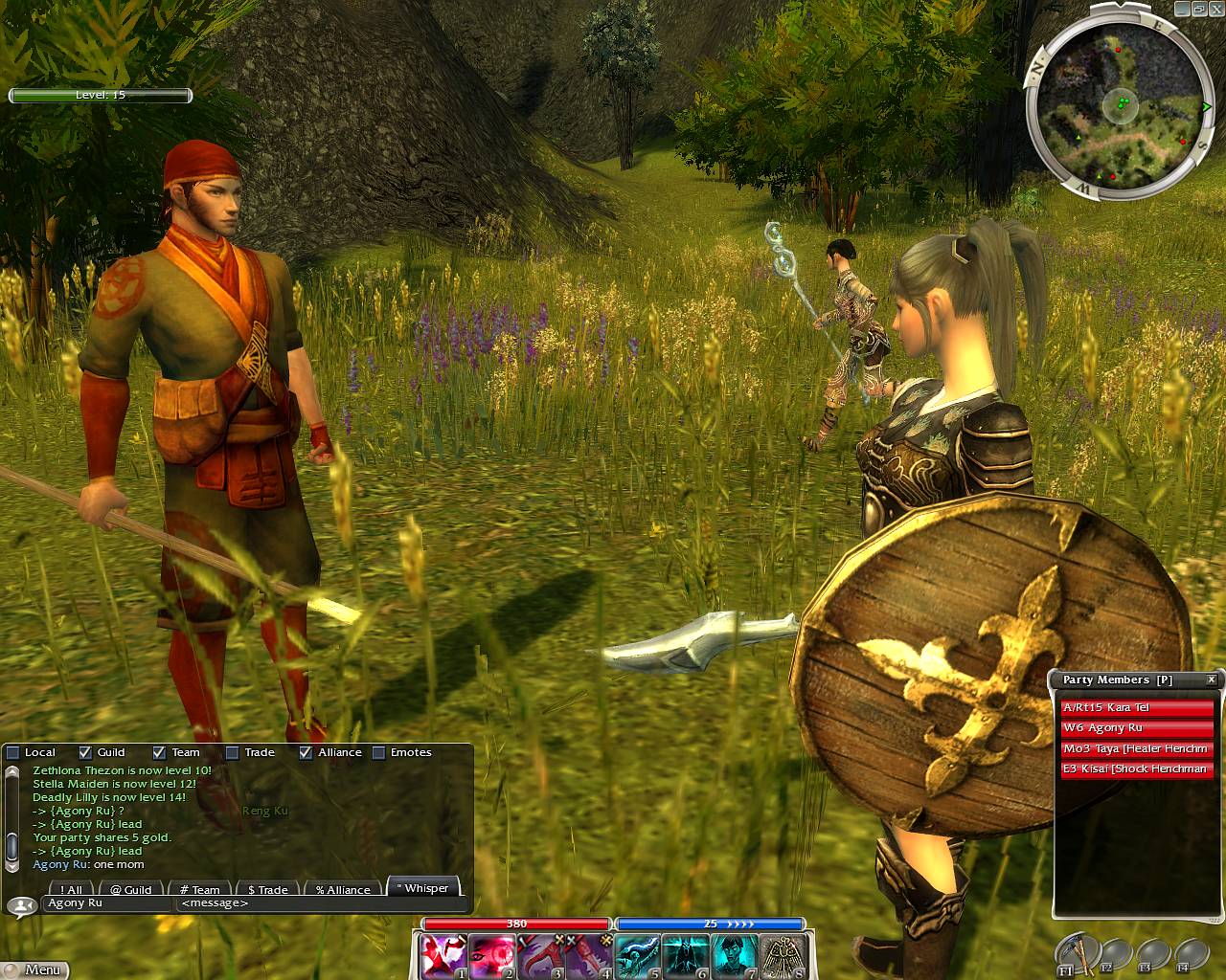 GW и раньше не сильно затрудняла раскачку персонажа. За выполнение миссий NPC платили звонкой монетой и одаривали опытом, чтобы превращение в высокоуровнего качка было быстрым и приятным. Асоциальным типам для выполнения поручений было позволено нанимать последователей (henchmen) - ботов, управляемый искусственным интеллектом. GW: Faction с одной стороны еще больше упростила процесс прокачки, а с другой - заставила пересмотреть свои взгляды на правомерность использования тупоголовых последователей. Миссии стали более жесткими. Если на начальном острове еще можно кое-как использовать ботов, то уже на материке приходится искать партию, поскольку там пробиться через полчища монстров можно только хорошо слаженной командой под предводительством опытного командира.