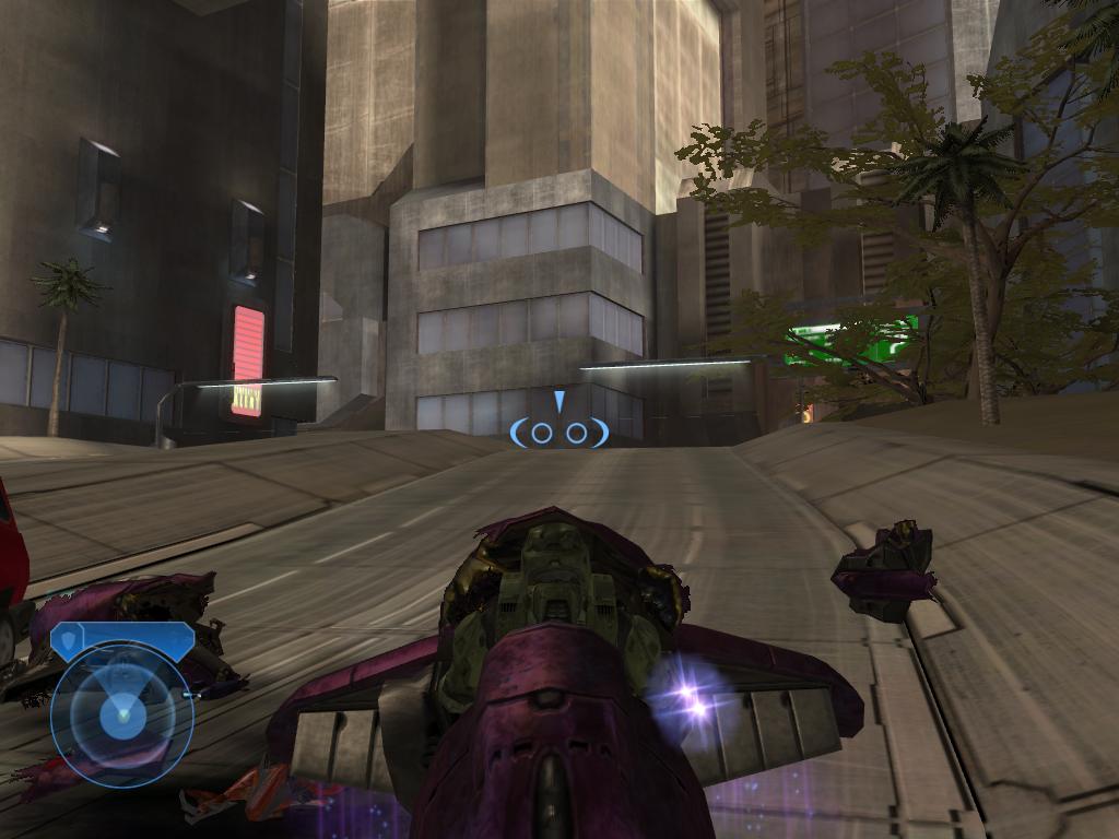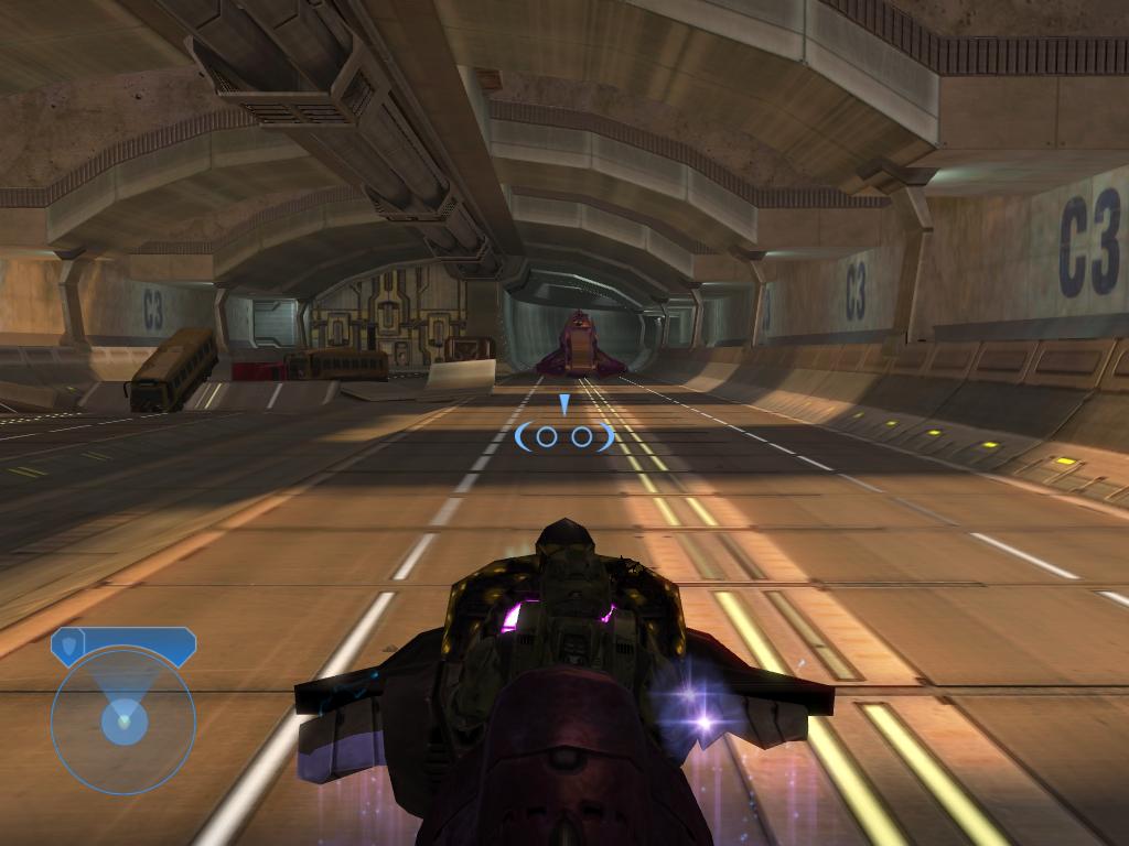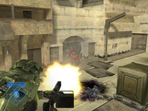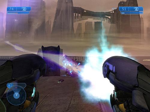 В первой части Halo предложила интересную концепцию энергетического щита, который оберегал здоровье героя и самостоятельно перезаряжался после получения повреждений. Однако, прогресс не стоял на месте и в 2004 году в Halo 2 Bungie предложила новую версию - у героя теперь вовсе нет полоски «жизни», остался один лишь щит. Таким образом отпала необходимость в аптечках и не приходится отвлекаться на их поиск. Вот этот вариант получил огромную популярность и его теперь в том или ином виде можно встретить во многих современных играх: стоит вспомнить хотя бы Call of Duty 2 или Rainbow Six: Vegas. Простота спасет мирНесмотря на то, что Halo и Halo 2 создавались для одной и той же игровой платформы Xbox, графически они отличаются существенно. Модели действующих лиц стали сложнее и современнее благодаря normal-mapping и увеличенному количеству полигонов. Многие эффекты стали выглядеть по-другому, свежее и приятнее для глаз. У Cтаршины выросли ноги и из-за этого пропало знакомое по многим шутерам ощущение парящей над землей тучки со встроенным бластером. Скриптовые ролики благодаря умелой игре с фокусом и светом смотрятся гораздо кинематографичнее. Режиссеры не боятся крупных планов и масштабных постановок, чтобы донести до зрителя эпический размах происходящих событий. Bungie не мелочилась и попыталась создать космооперу лукасовских масштабов. И маленькая вселенная первой части, уместившаяся в одном мире-кольце, неожиданно разрослась до размеров галактики.Однако, не все так хорошо, как хотелось бы. Особенно если вспомнить отлично портированную на PC первую часть, где световые эффекты реализованы лучше (ослепление при взгляде на солнце, пробивающиеся сквозь крону деревьев лучи) а оптический прицел слегка размывал картинку - в противовес простому кругу из Halo 2. Также стоит отметить, что вторая часть требует гораздо больше системых ресурсов, чем предлагает картинка, а между уровнями пролазят ощутимые подгрузки. На Xbox, к слову, подобных «швов» вовсе нет.