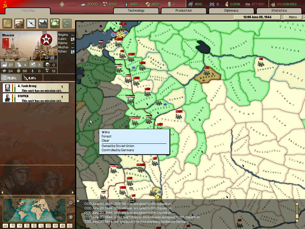 Параллельно с дипломатическими усилиями следует начинать подготовку непосредственно к ведению боевых действий. Помимо вполне очевидного строительства всяких разных дивизий, сборки самолетов и танков, есть вещи менее очевидные, но от того не менее нужные. Например, строительство приграничных аэродромов. Дело в том, что самолеты не могут садиться в какой попало провинции, им нужны, хо-хо, авиабазы. Разместив оные авиабазы вдоль границы, и приказав в урочный час начать битву за контроль над воздушным пространством, проникнитесь абсолютным буддистским спокойствием - сталинские соколы будут совершенно самостоятельно чиниться на аэродромах, после чего опять бросаться в бой.