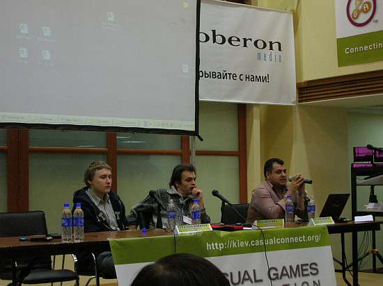 На интереснейший доклад Ивана Ткаченко (вице-президент Nikitova Games/Kenjitsu) не попала и половина. Говорил же он об успехе. Таком банальном и недостижимом. Делился собственным опытом, ведь за плечами компании - разработан добрый десяток игр, среди которых работа над кодом и артом Mystery Case Files. Объяснил на пальцах куда девать небольшой бюджет (для казуальных игр это 50-200 тыс. USD). 20-45% - художникам, 20-25% - программистам, столько же дизайнерам, остальное - давать бонусом за толковые и креативные идеи. Разложил по полочкам задачи каждого участника проекта от менеджера и тестеров до продюсера и продавцов. Схожая информация, хотя и под другим углом прозвучала немного позже в финале конференции. Правда, Дмитрий Мисько (генеральный директор Aliasworlds Entertainment), Андрей Гончаров (директор GameOver-Games) и Крейг Холланд (Craig Holland) говорили больше о постоянном контроле качества и реагировании на малейшие изменения в настроениях пользователей.