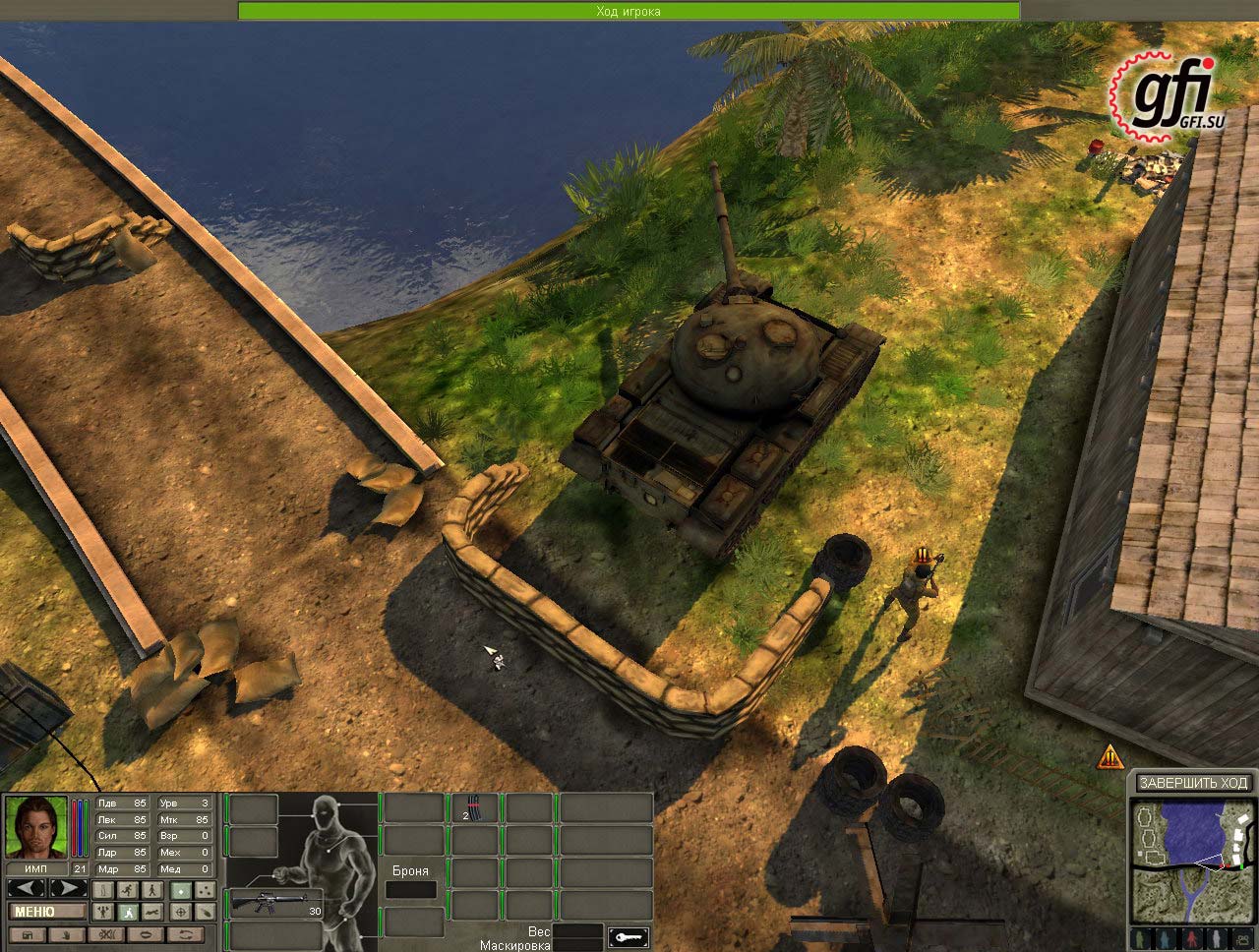 iXBT: Обычно, для того чтобы противника убить, его сначала надо увидеть. А можно ли в Jagged Alliance 3D его услышать? Вообще, какие есть способы обнаружения врага, кроме визуального?