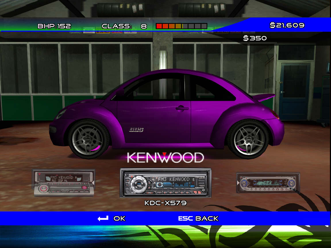 Возможности косметического тюнинга совсем не впечатляют. Скудный набор из трех с половиной бамперов, юбок и спойлеров, никаких зеркал или, прости, Боже, воздухозаборников и выхлопных труб на складе нет, и не предвидится. Зато есть неоновая подсветка днища, несколько автомагнитол (и мобильных телефонов — чтобы с соперниками, дилерами и членами команды общаться :)) и даже различные звуки клаксона. Приятно удивляют возможности покраски — базовый цвет, «металлик» и перламутровые переливы, все с возможностью выбора «интенсивности» и оттенка. На трассе смотрится просто великолепно!
