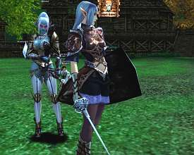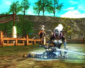 В последних Chronicle новичкам стало намного легче жить. Мало того, что им бесплатно вручают 6.500 SoulShot'ов (специальных усилителей ударов), так еще и появившийся Newbie Helper может обласкать ворохом полезных заклинаний, благодаря которым первоначальная прокачка выполняется стремительно и весело - 20-ый уровень вполне реально взять за один день. Аватара и мирДля того чтобы войти в новый мир, для него надо сначала родиться. Lineage II предлагает 5 рас на выбор, одна другой краше, милее и, чего греха таить, сексуальнее: люди (Human), эльфы (Elf), темные эльфы (Dark Elf), орки (Orc) и гномы (Dwarf). Одна из немногих игр, где эльфы, следуя Букве, на самом деле, существа красивые, слегка не от мира сего. Люди, чуть более коренастые, смотрятся эльфийскими родственниками на фоне перекачанных стероидами орков. Те не спешат показывать клыки и выглядят, как культуристы, со странным зеленоватым окрасом кожи. Гномы… Гномы - это местный прикол. Пузатые седоволосые дедушки и большеглазые девочки-школьницы из анимешных мультиков породили множество споров о том, как же размножается гномья раса. Дизайн героев и существ стал далеко не последним фактором, обеспечившим Lineage II такую популярность. Те, кому не пришелся по вкусу гротескно-мультяшный World of Warcraft и «театр уродцев» из EverQuest 2, здесь, на самом деле, найдут, на что посмотреть. Стройные длинноногие эльфийки радостно пищат во время боя. Их темные подружки, готовые модели для «Плейбоя» и «Пентхауза», нарядившиеся в кожаные ремни и в едва прикрывающие телеса платьица, бегают туда-сюда, выставив филейные части на всеобщее обозрение. Хрупкие эльфийские юноши недобро косятся на широкоплечих представителей человеческой расы и испуганно прячутся при виде вышагивающих орковских амбалов. Гномы путаются под ногами у этих красавцев вместе со своими внучками-школьницами. Вместо набившего уже оскомину европейского фентезийного сеттинга, существа Lineage II смотрятся необычно и, что немаловажно, приятно. Это касается и персонажей, примеряющих на себя внушительный гардероб из блестящей, эффектной брони, и существ, за которыми приходится день ото дня вести охоту. Героям этого мира соответствует и окружение - поросшие травой луга, вялотекущие реки, разрушенные, покинутые деревеньки и, конечно, уходящие ввысь города, выполненные в интересном готическом стиле. В минус можно приписать только некоторую пустоту - это отнюдь не любовно выпестованный в лаборатории дизайнеров игровой мир World of Warcraft, где даже на пятачке 5х5 метров есть, где взгляду зацепиться. Тем не менее, в Lineage II встречаются действительно приятные для туризма локации.