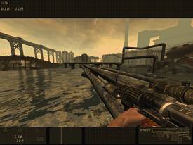iXBT: Переходим к оружию. Система апгрейдов базовой конфигурации довольно интересна, и весьма нравится игрокам. Однако представленный в ролике «Дракон» со всеми навесками занимает добрую треть игрового экрана, иногда просто загораживая обзор. По предоставленной вами информации становится понятно, что с этой игрушкой игроку предстоит провести немало времени. Является ли данная модель оружия окончательной, или на стадии разработки ещё возможно внесение изменений? Можно ли будет поднимать оружие над головой, стреляя, скажем, из окопа? Orion Games: Скорее всего, модель меняться не будет, а расположение на экране изменилось уже сейчас. К тому же, в ролике Дракон уже практически в полной конфигурации. Сначала он выполняет функцию обыкновенного автомата, потом к нему присоединяется гранатомет, ракетница, огнемет. Недавно был добавлен модуль тепловой пушки, стреляющей чем-то типа молнии. В месте попадания - мощный взрыв с искажением пространства. iXBT: Раз уж у игрока будет возможность использовать средства передвижения - дадут ли ему возможность и пострелять из чужеродного оружия? Orion Games: Возможность пострелять из стационарного оружия будет (при этом мы не будем отходить от описанного в книге мира). Другими словами, стационарные установки будут вполне привычных типов: пулеметы, пушки, огнеметы, ракетные установки. iXBT: А как будет влиять на точность стрельбы показатель «stamina»? Будет ли усталость игрока сопровождаться какими-либо визуальными эффектами?