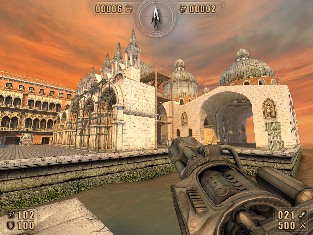 Наверное, уже никто не сомневается, что Восточная Европа — всепланетная кузница игровых кадров. Так, попался на глаза безвестной команде разработчиков из Польши отличный, проверенный и хорошо себя зарекомендовавший пример — Serious Sam — и решили они сделать свою версию. Конечно, и у Croteam были сложности — планировали сделать игру в три раза длиннее, чем получилось, но деньги и терпение издателя кончились слишком рано — однако, саму возможность подобного пути хорватская команда доказала. Многие могут удивиться: с чего это начинающая команда игроделов обратила внимание на ПК? Ведь на приставках можно заработать себе на личный автопарк из красных обтекаемых автомобилей во много раз быстрее! Проблема в том, что на приставки кого попало не пускают. Стоимость платформы для разработки игры под PS2 займет внушительную часть бюджета средней игры обычного ПК-стартапа. Поэтому начинается все здесь, на компьютерах. А уж потом сколотившие себе репутацию разработчики принимаются за создание очередного идейно пустого клона супербратьев Марио для какого-нибудь Xbox Next. БолеутоляющееЛегче всего суть Painkiller передается аналогиями — в игре так мало нового, что для его пересчета хватает пальцев на одной крепкой трехпалой руке. Заметьте, я не сказал, что это плохо, просто всё мыслимое здесь уже придумано задолго до нас. Парадокс жанра (вот не знаю, стоит ли писать про жанр Painkiller или слов о похожести на Serious Sam достаточно?) заключается в его основополагающей, неизбежной свежести. Берем всего лишь три компонента: врагов, оружие и адреналин. Сваливаем в кучу и перемешиваем, заливаем движком и дизайном, шинкуем сюжетом из трех строчек и отстегиваем намордник. Смесь впивается в ваше время подобно известному face-hugger из квадрологии «Чужие». Еще один уровень. Еще один... И еще... Воскресенье скрылось в адреналиновом тумане, за окном поют понедельничные птицы, на запястье правой руки слезящиеся красные глаза с изрядным удивлением обнаруживают лопнувшую мозоль. Нет ничего лучше чистого сиюминутного экшена. Новомодные online и stealth бледнеют и симулируют смертельные недуги, отказываясь являться на честную джентльменскую дуэль. Gun-blazing fury — так это именуется. Это всегда называлось именно так. Это называлось так десять лет назад на кислотных подмостках Dead Simple и The Circle of Death. Это называлось так восемь лет назад в пропитанных странными звуками коридорах Quake. Хитрые братья Вачовски осквернили саму суть bullet time. Рапид должен быть у вас в голове — это ваши мысли и реакции должны ускоряться под воздействием адреналина, а вовсе не останавливаться картинка на экране монитора. Но хватит эмоций, разберем пациента на детали. Начнем с оружия. С ним обошлись без фантазии — почти всё оно заимствованное. Но можно ли здесь придумать что-то новое? Шотган, коломет (пытается подменить собой арбалет), гранатомет, таинственной конструкции, крутящийся и стреляющий посох (если бы не его стрельба, была бы чистой воды бензопила) и, простите, сурикеномет. Последний еще и бьет током. Необычность единственная: «пушек» де-юре всего-то лишь пять штук, однако, альтернативные режимы стрельбы превращают их, по сути, в другое оружие. Так, гранатомет по совместительству работает шестиствольным пулеметом, а шотган умеет замораживать врагов с целью их последующего убиения одним лишь выстрелом. Подобные двойные 