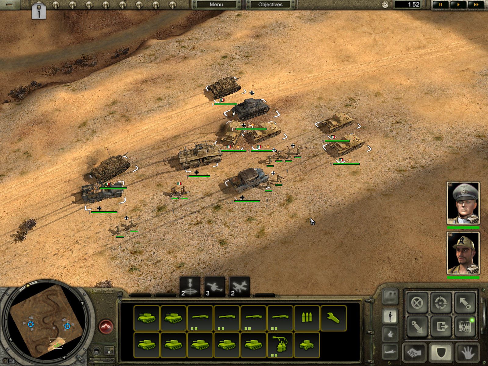 Говоря об игре, нельзя обойти вниманием дизайн миссий. Он чудесен. Скажем, в одном задании при прорыве вражеских оборонительных линий срабатывает скрипт, и британцы с матюгами убегают к своему лагерю - последнему очагу сопротивления. Смотрится их отступление потрясающе. В другой раз надо было заманить этих же несчастных британцев под огонь наших зениток. Перед злой бронированной колонной показывается одинокий недотанк, корчит рожу и пытается убежать. Колонна с рычанием и воплями «Убью гада!» кидается за ним. То есть, за нами. Очень весело. Есть и дополнительные, и секретные задания – любители тщательно обшаривать карту не останутся разочарованными. За скрытые mission goals полагаются призовые очки. На очки покупаются вооруженные силы для участия в следующей самоубийственной авантюре. Короче говоря, посконного «kill’em all!» не завезли.
